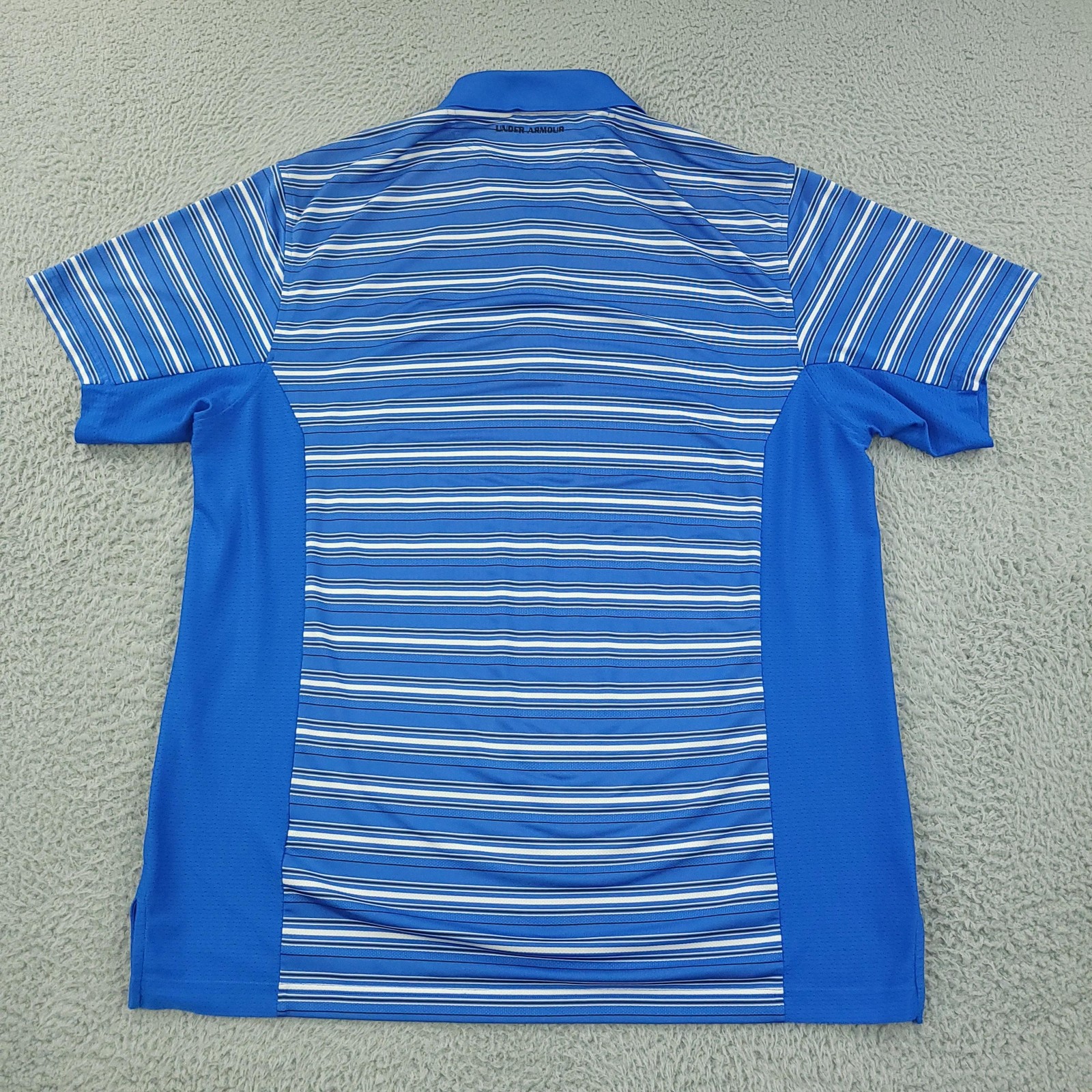 Under Armour Polo Shirt Mens XL Blue Stripe Golf Performance Stretch Top