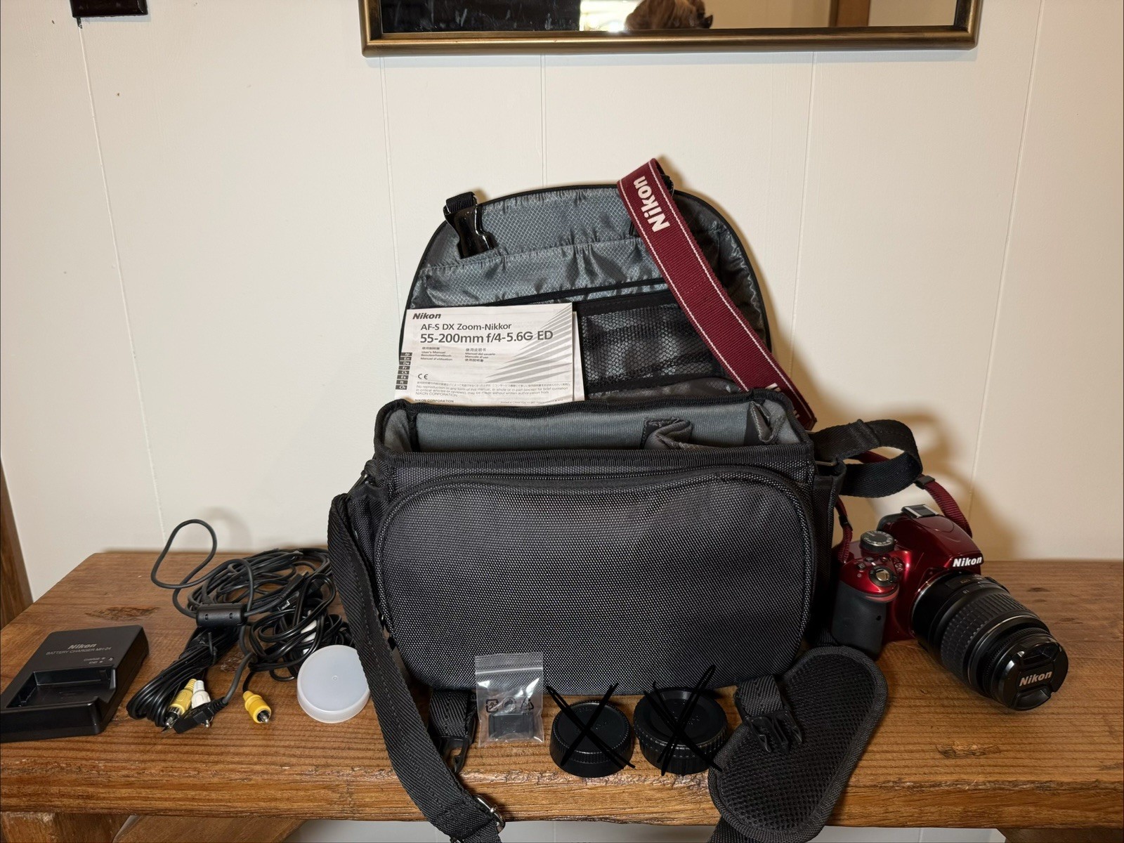 как выглядит Nikon D3200 Red Camera Bundle DX 18-55mm Lens, Bag, Charger, Cables, Battery фото