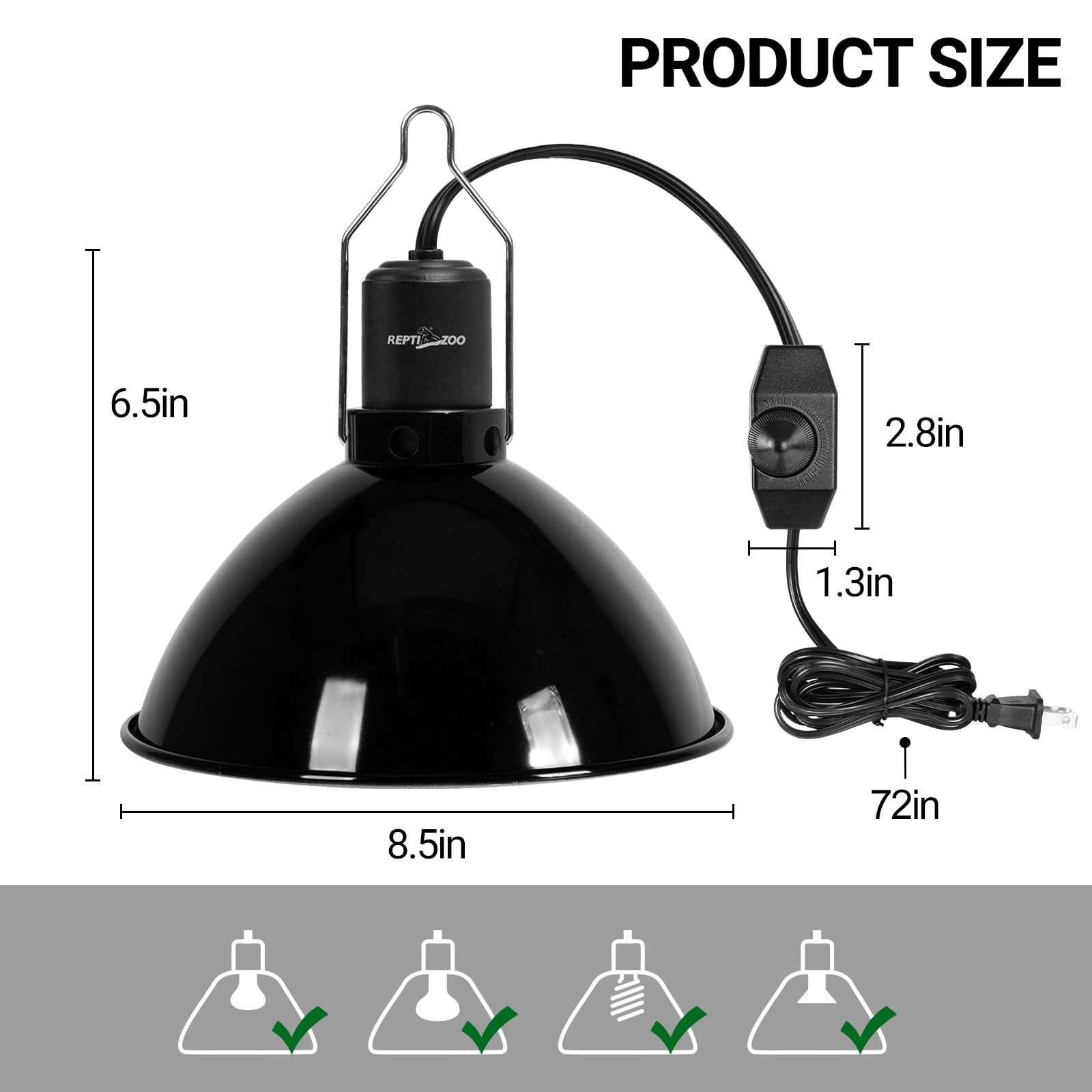 New REPTI ZOO Upgrade Reptile Light Fixture with Dimming 8.5 inch Deep Dome Lamp