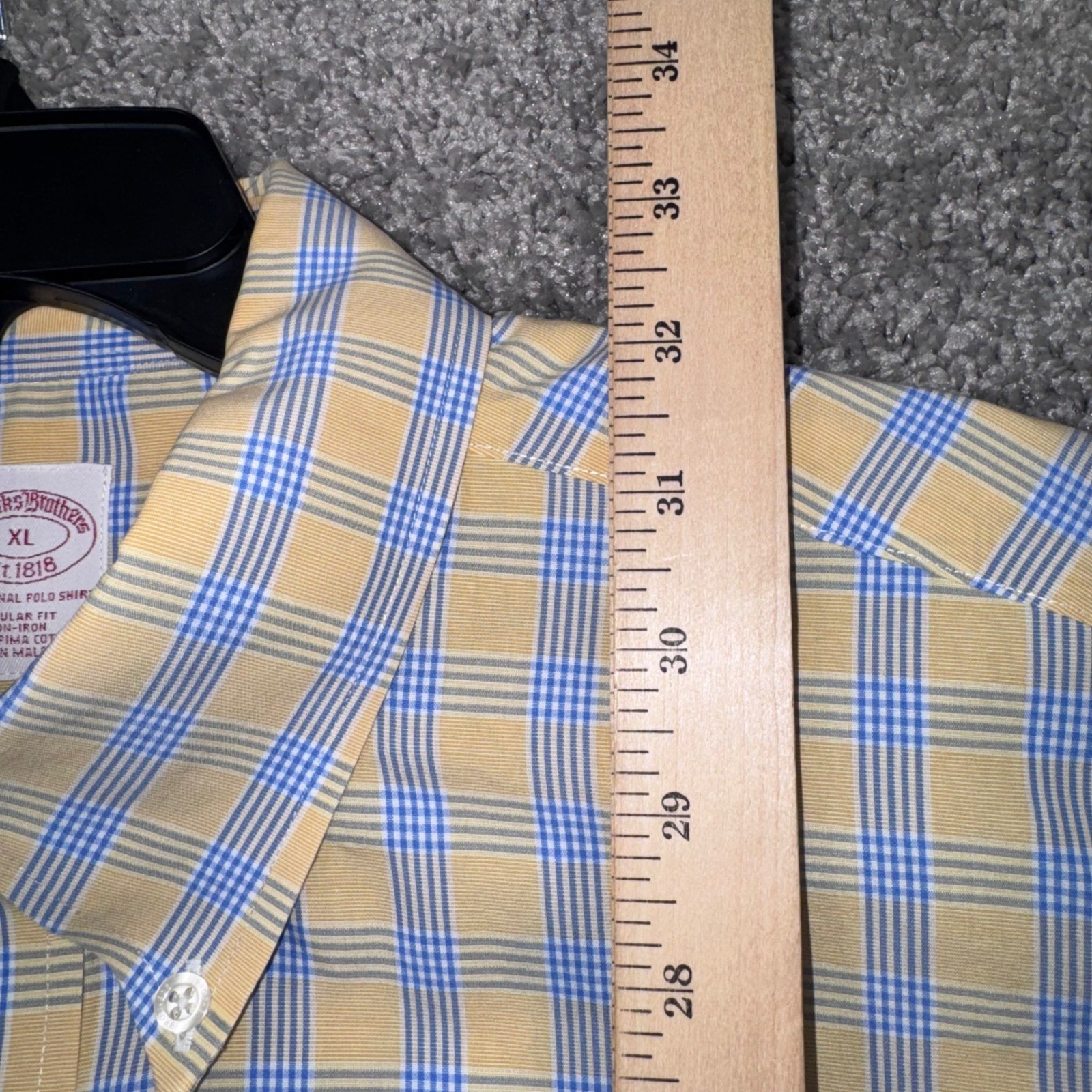 как выглядит Brooks Brothers Button Down Mens Regular Fit Non-Iron Plaid Yellow XL Excellent фото