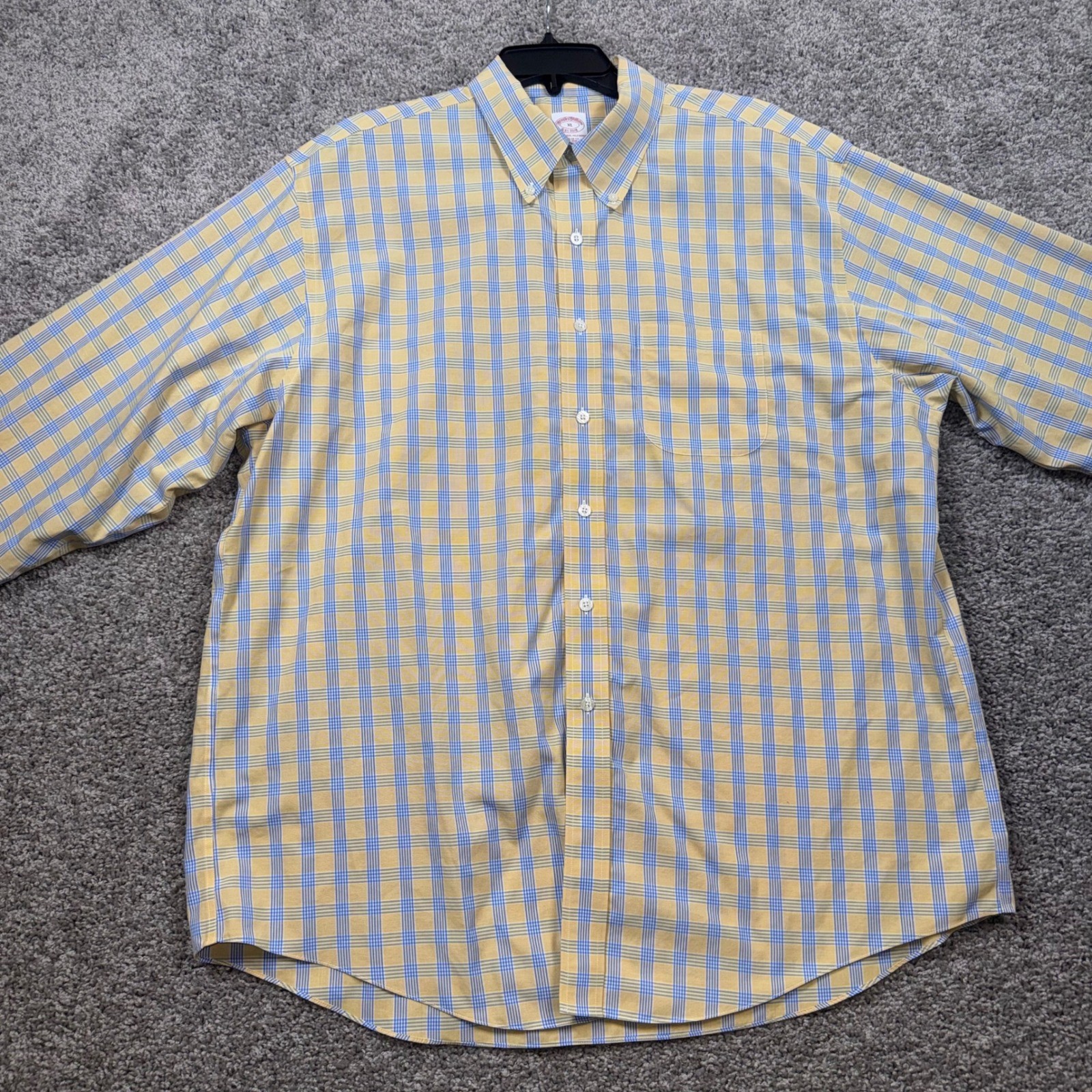Brooks Brothers Button Down Mens Regular Fit Non-Iron Plaid Yellow XL Excellent