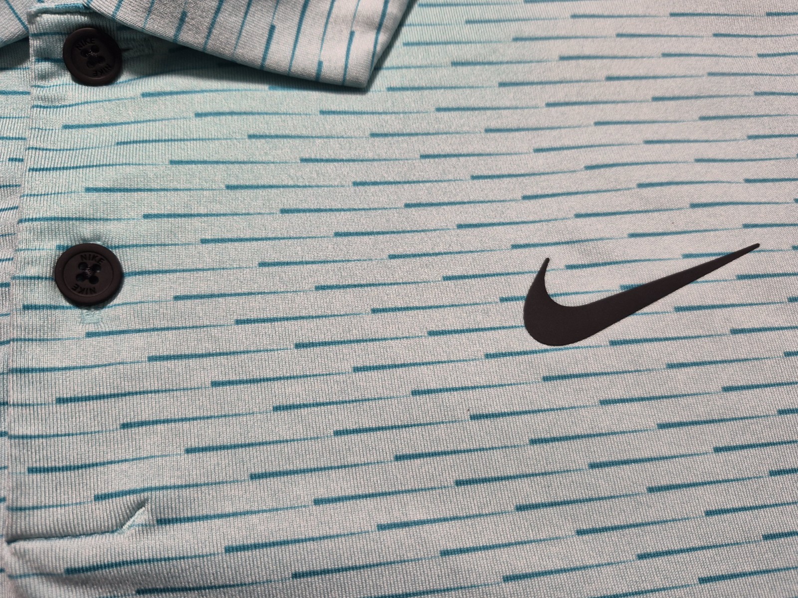 как выглядит Nike Dri-FIT Golf Polo Shirt Mens Large Aqua Stripe Standard Fit Short Sleeve фото
