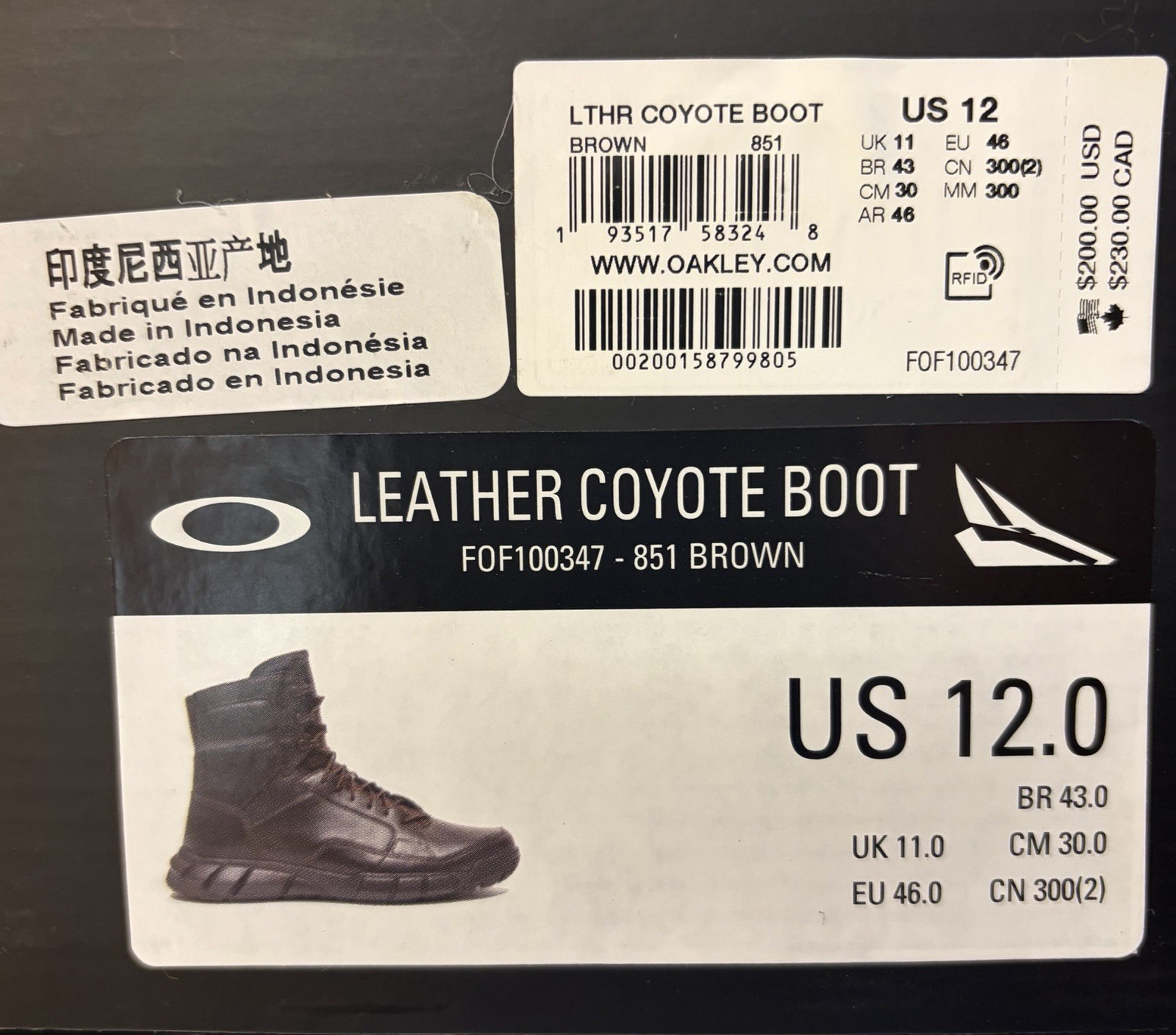 Oakley Mens Coyote Leather Boots Dark Brown US 13 Leather Lace Up Light Combat
