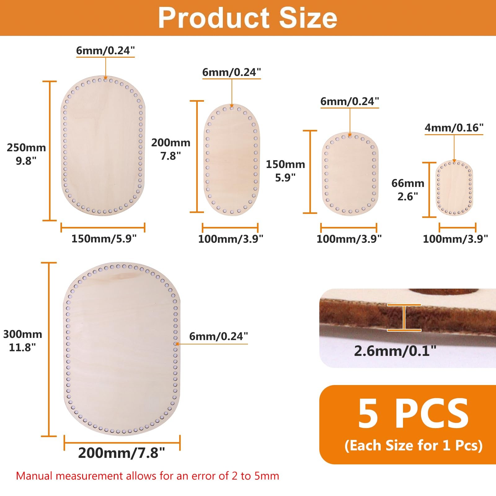 4/6/8/10/12 Diameter Basket Bottoms for Crochet Bases, 5Pcs Natural Blan...