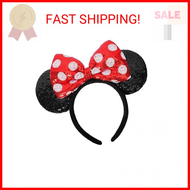 UNSPAZ Mouse Ears Headbands, Sequin Mouse Ears for Women Girls Boys, Shiny Bow H