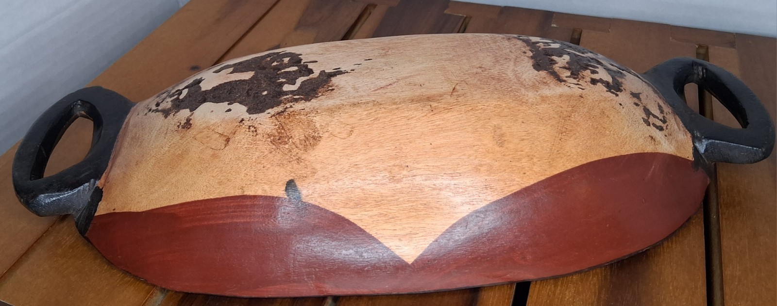 African Tribal Art Hand Carved Painted Wooden Trinket/Candy/Key Tray/ Oval Bowl