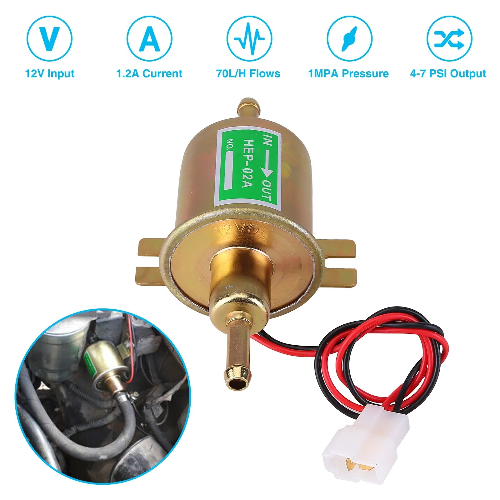 Electric Fuel Pump 12V Universal 4-7 PSI Gas Diesel Inline Low Pressure HEP-02A