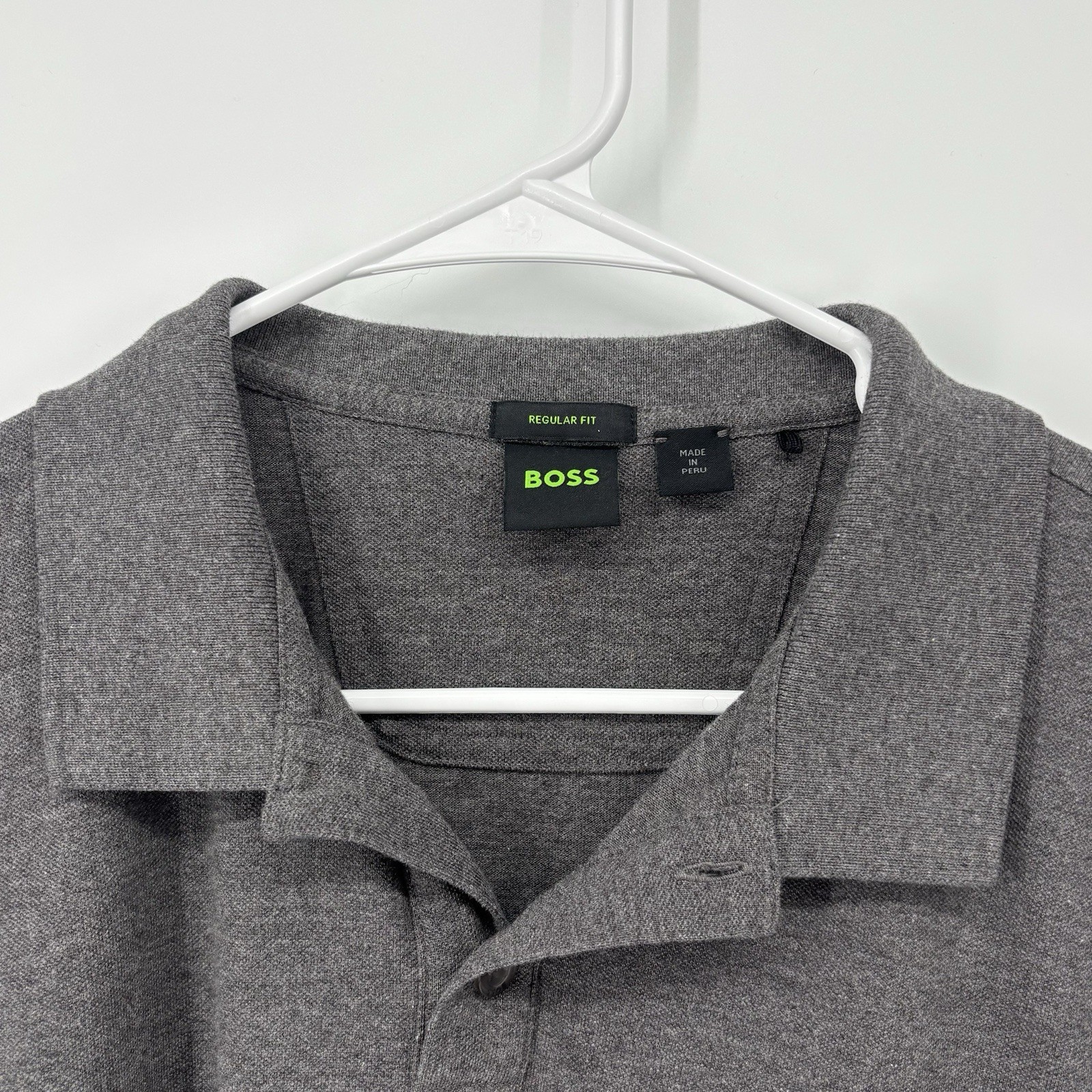 Hugo Boss Mens Regular Fit Cotton Solid Short Sleeve Polo Shirt Gray Large