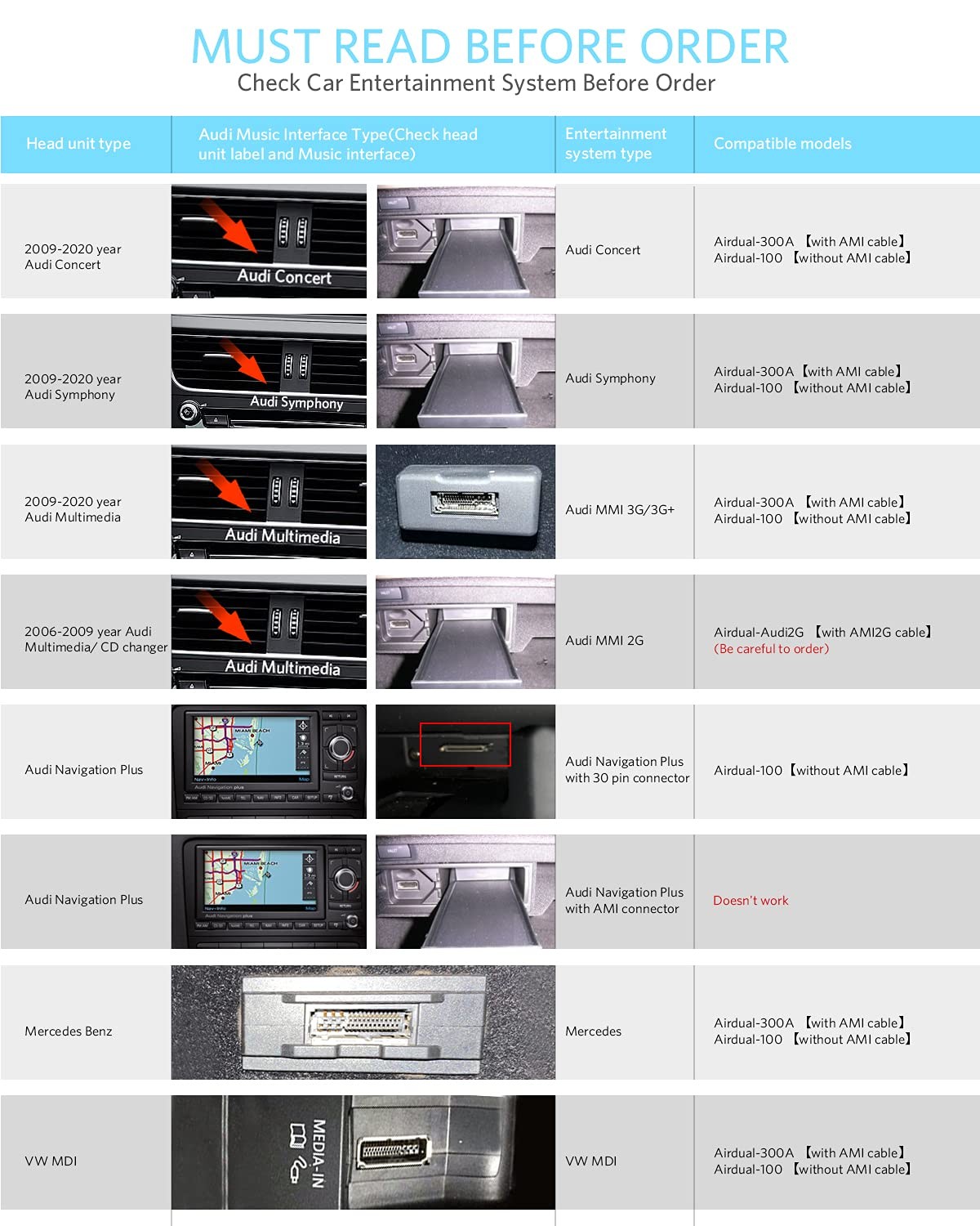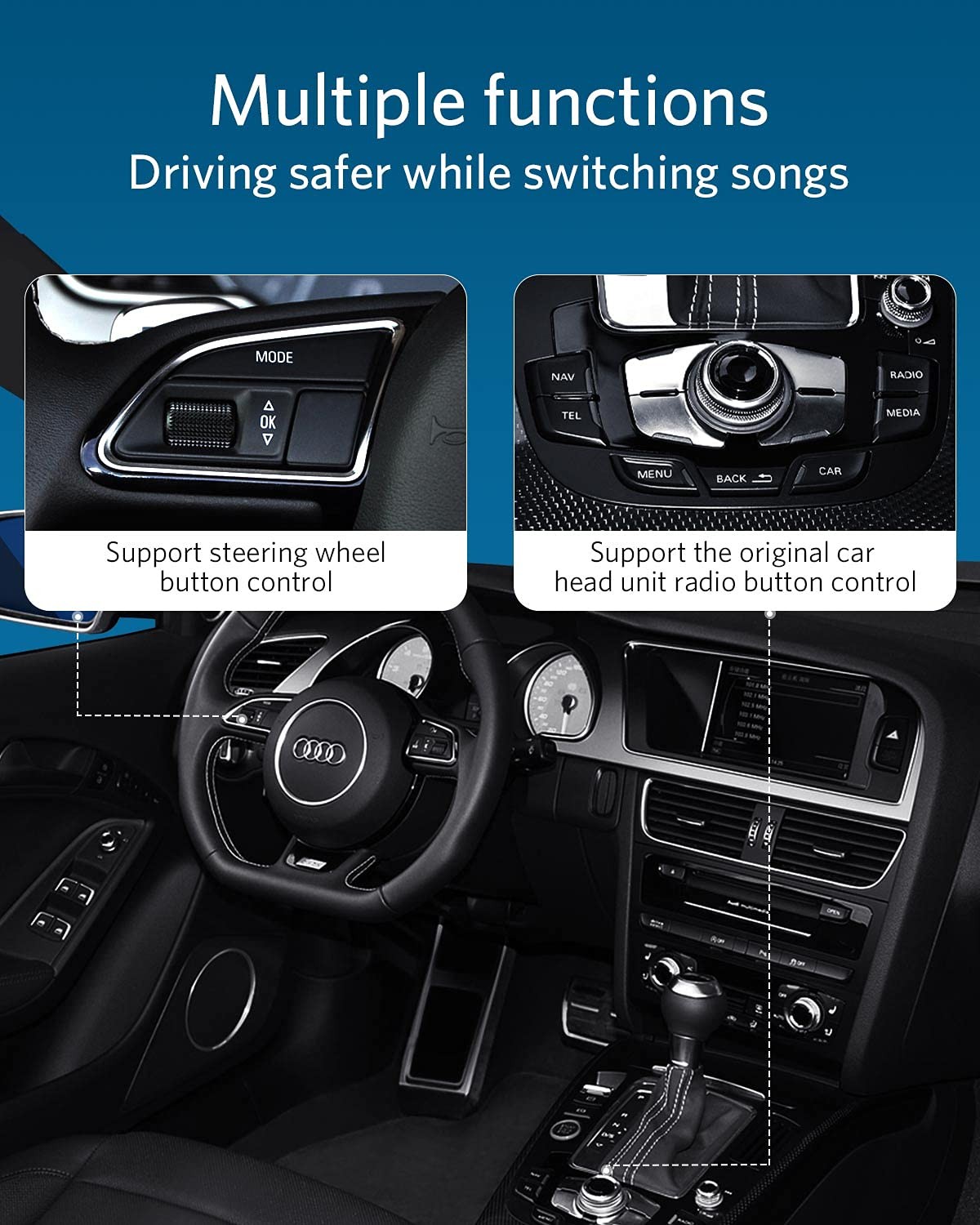 INVERY Airdual Bluetooth 5.0 aptX-HD Car Adapter Compatible for Audi Black