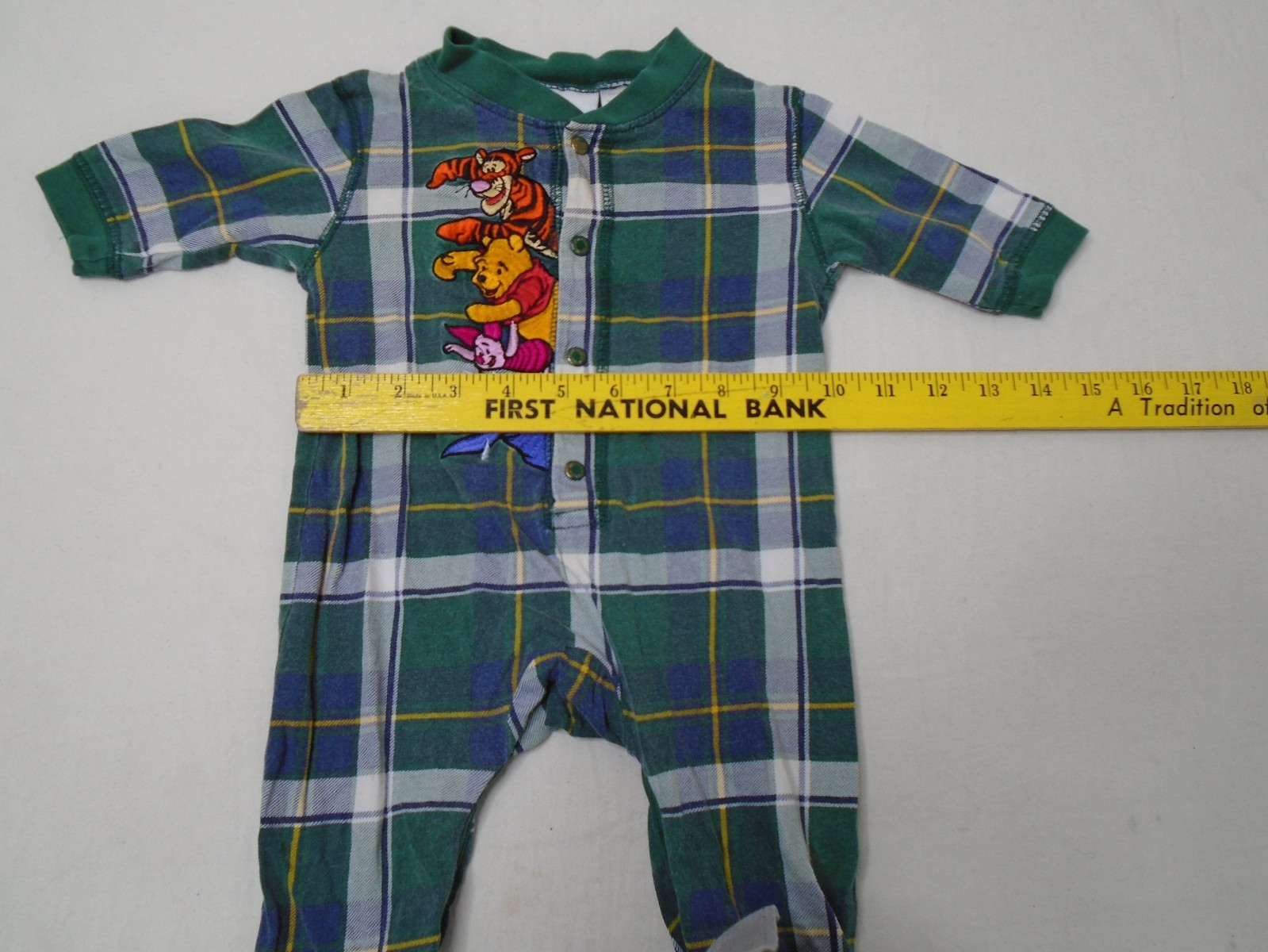 как выглядит Vintage 90s Winnie The Pooh Friends Green Plaid One Piece Embroidered 3 Months фото