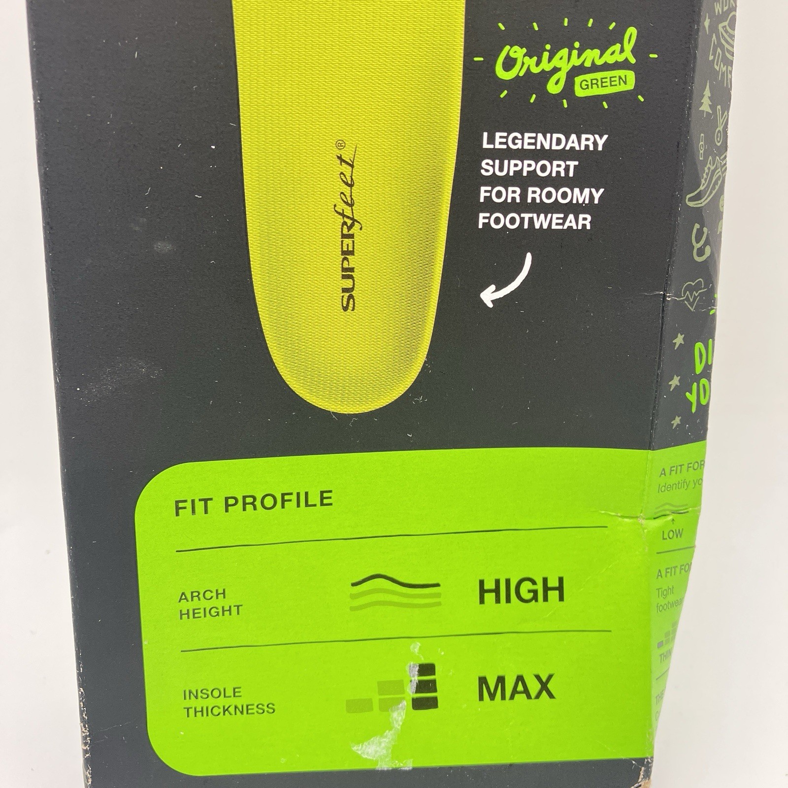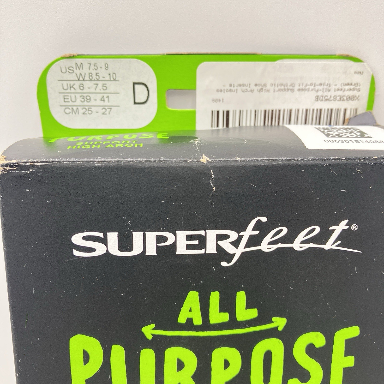 Superfeet Green All Purpose Insoles Size D Men 7.5-9 Women 8.5-10 High Arch