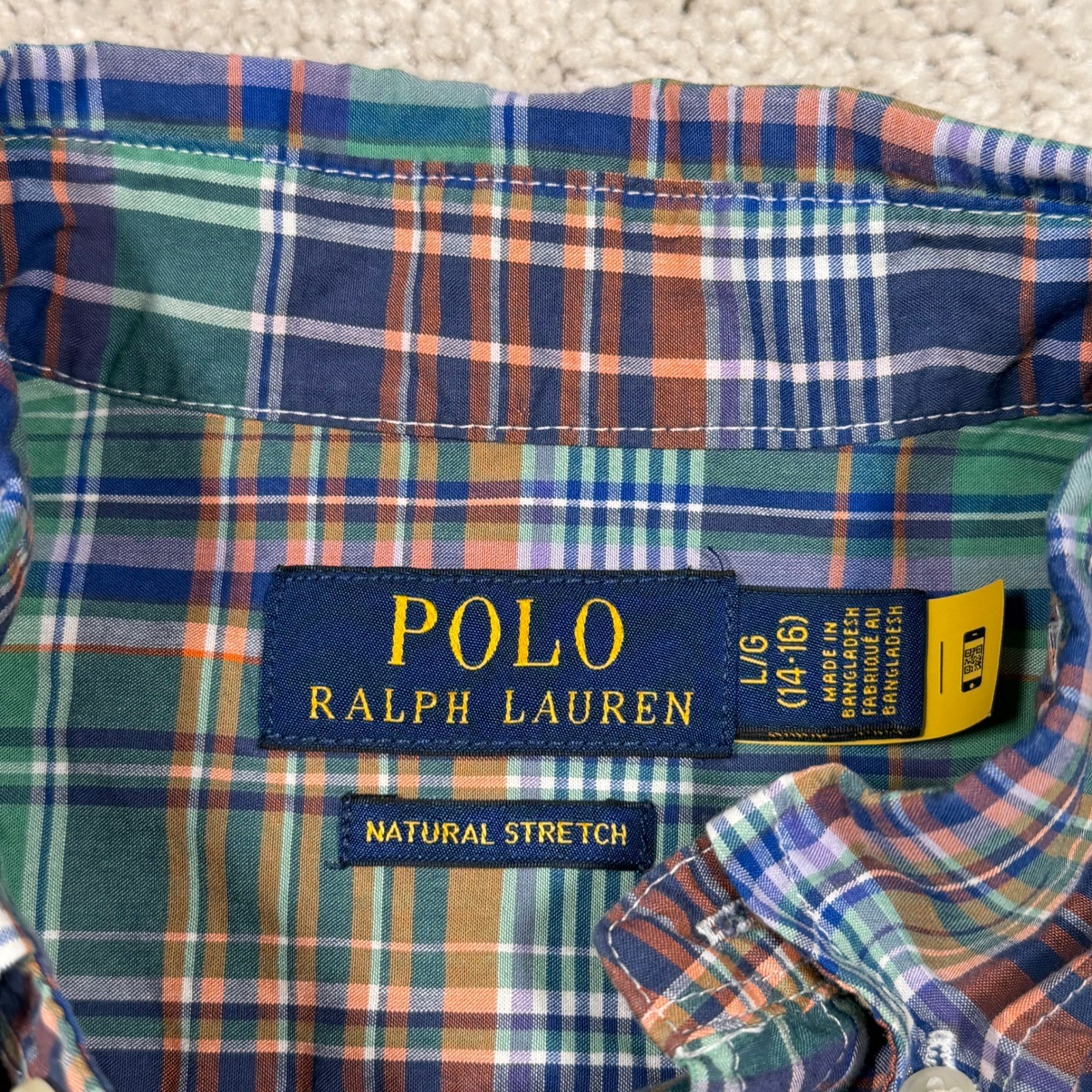 Polo Ralph Lauren Kids Plaid Button Down Shirt Green Orange Blue L