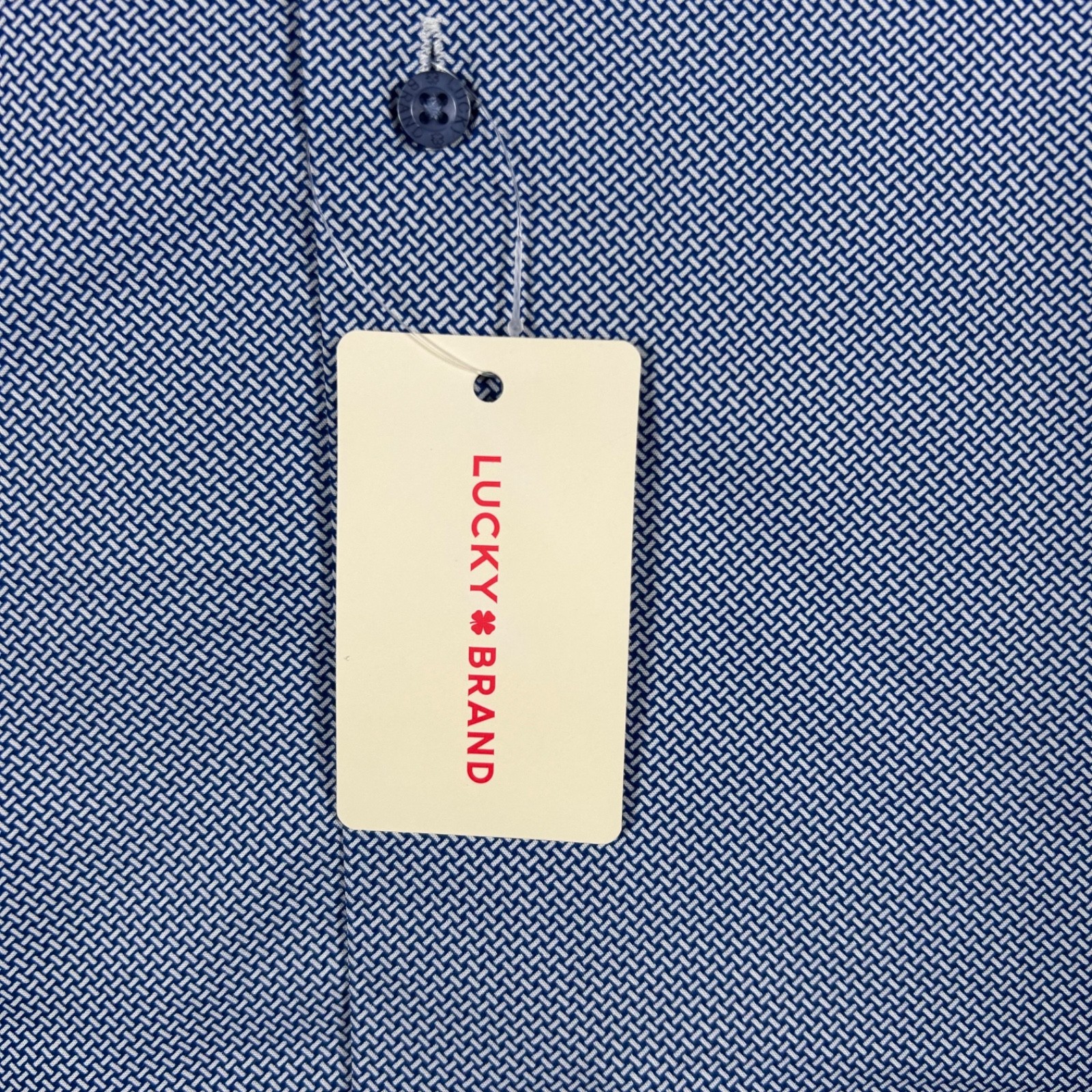 Lucky Brand Slim Fit Stretch Dress Shirt Mens M 15-15.5 Blue White Print NWT