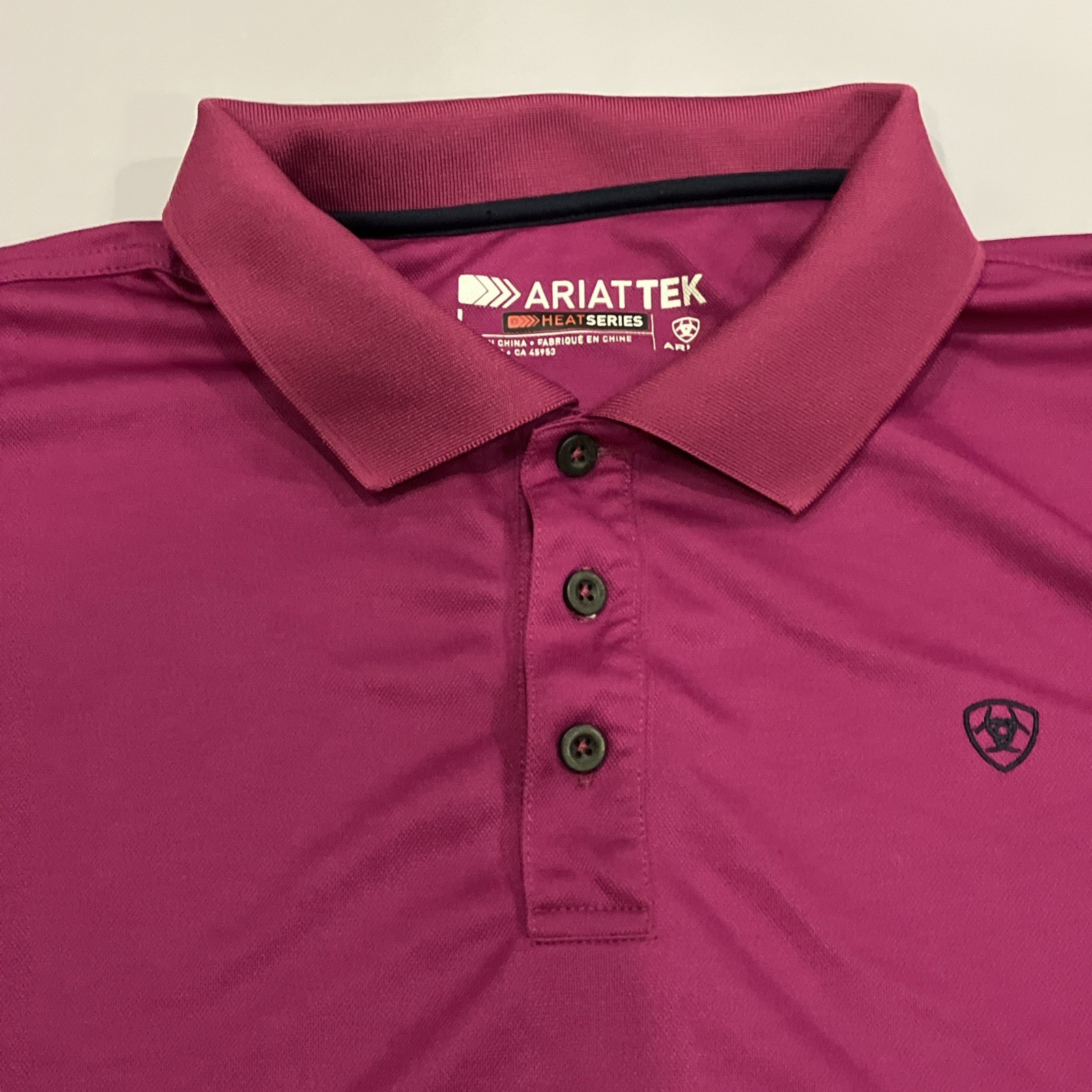 ARIAT TEK Polo Shirt Men's LARGE Heat Series Performance Stretch Purple Golf