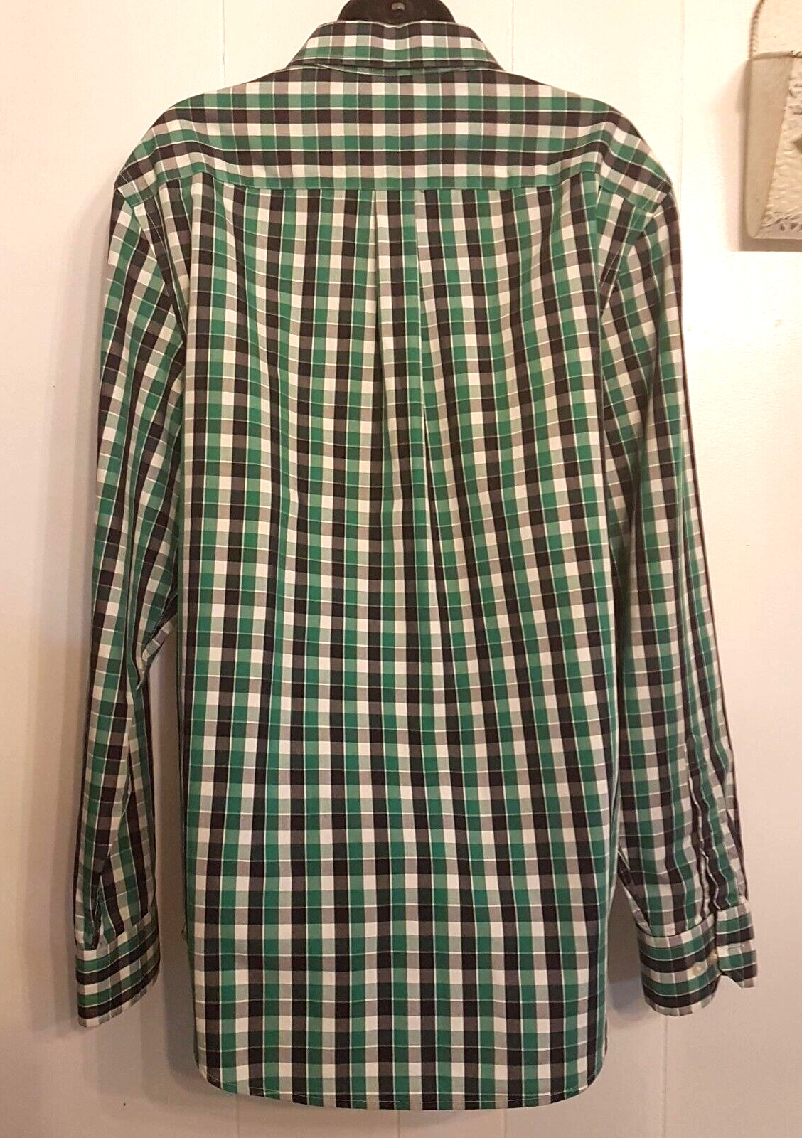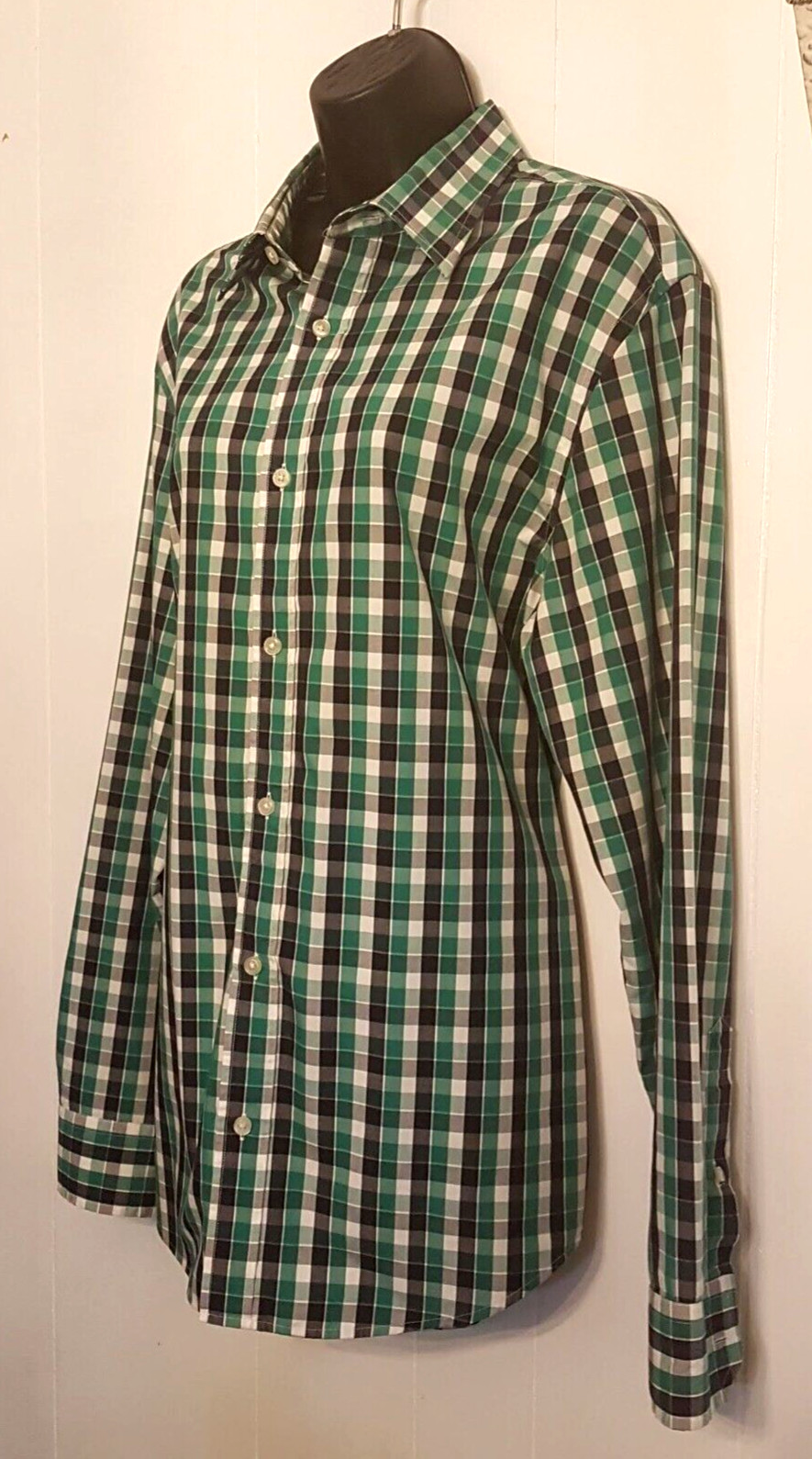 Banana Republic Button Up Mens Shirt Non Iron Tailored Slim Fit sz L Green Plaid