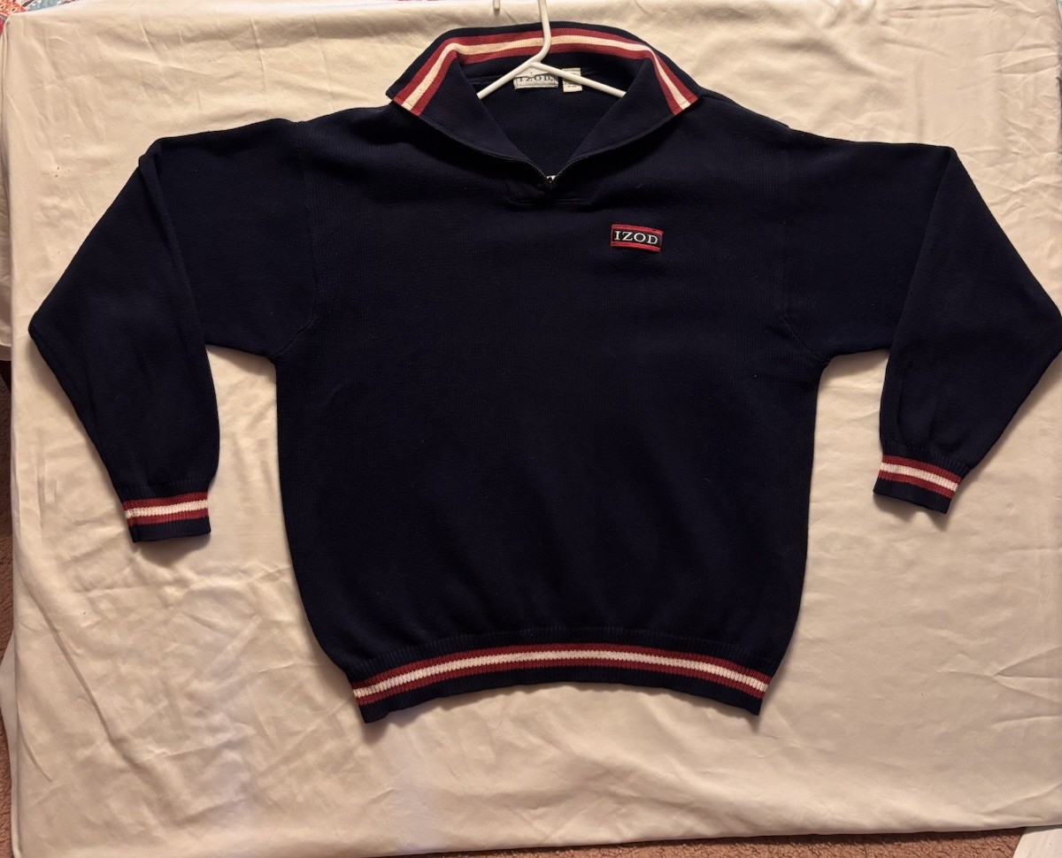 Izod Men s Red White and Blue Half Zip Sweater Stipe Collar Size XL