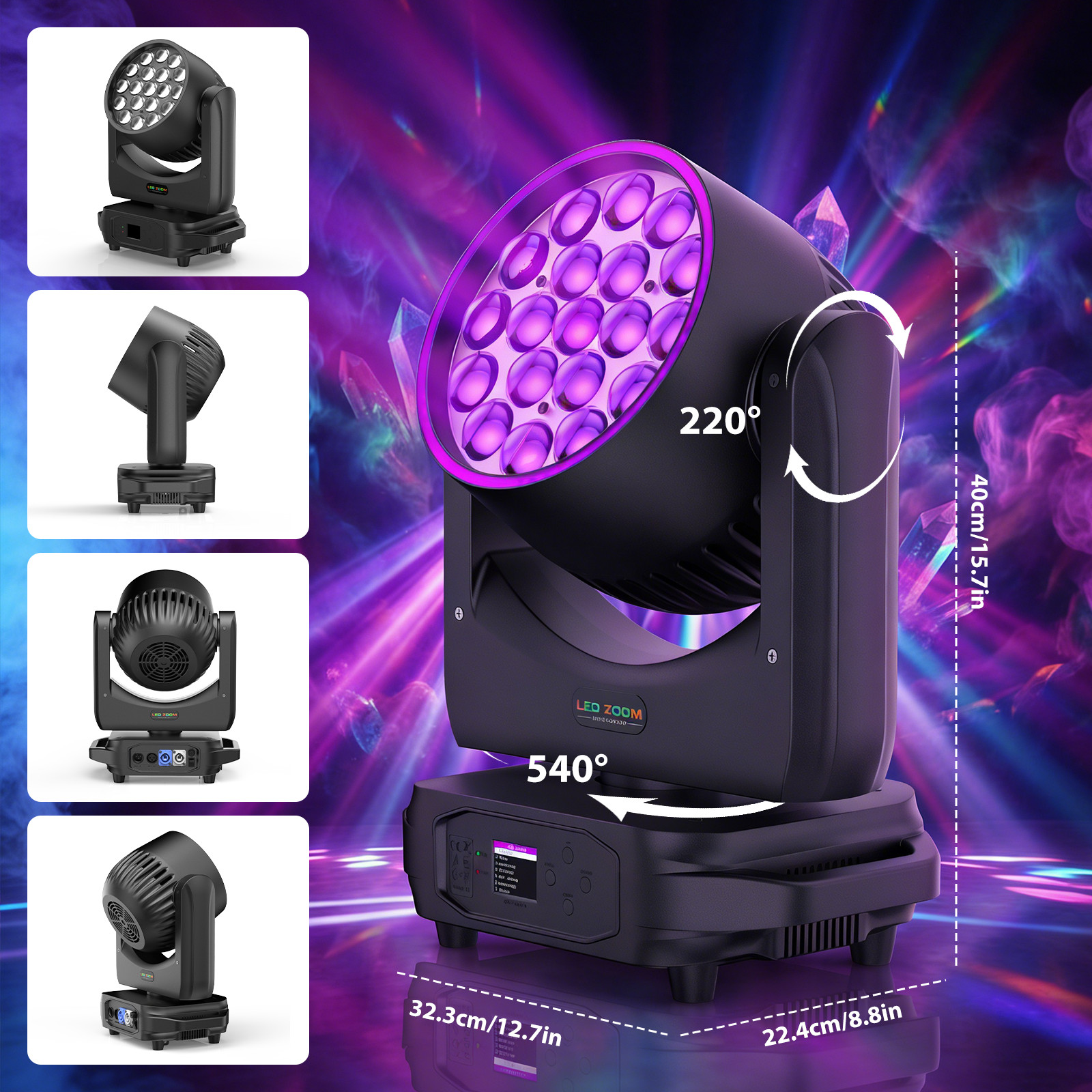 19x20W Moving Head Light RGBW DMX LED Beam Stage Wash Lighting DJ Disco Bar