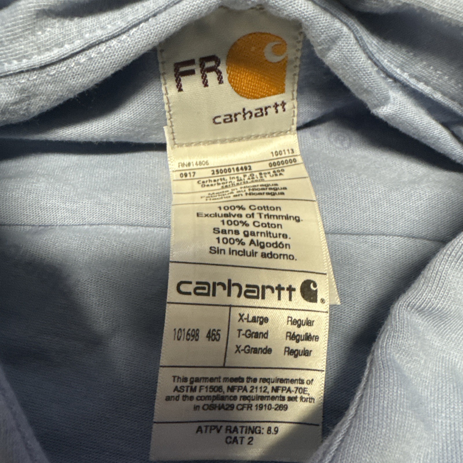 Carhartt Force Shirt Men's XL Blue FR Fire Resistant Shirt Workwear Company Logo