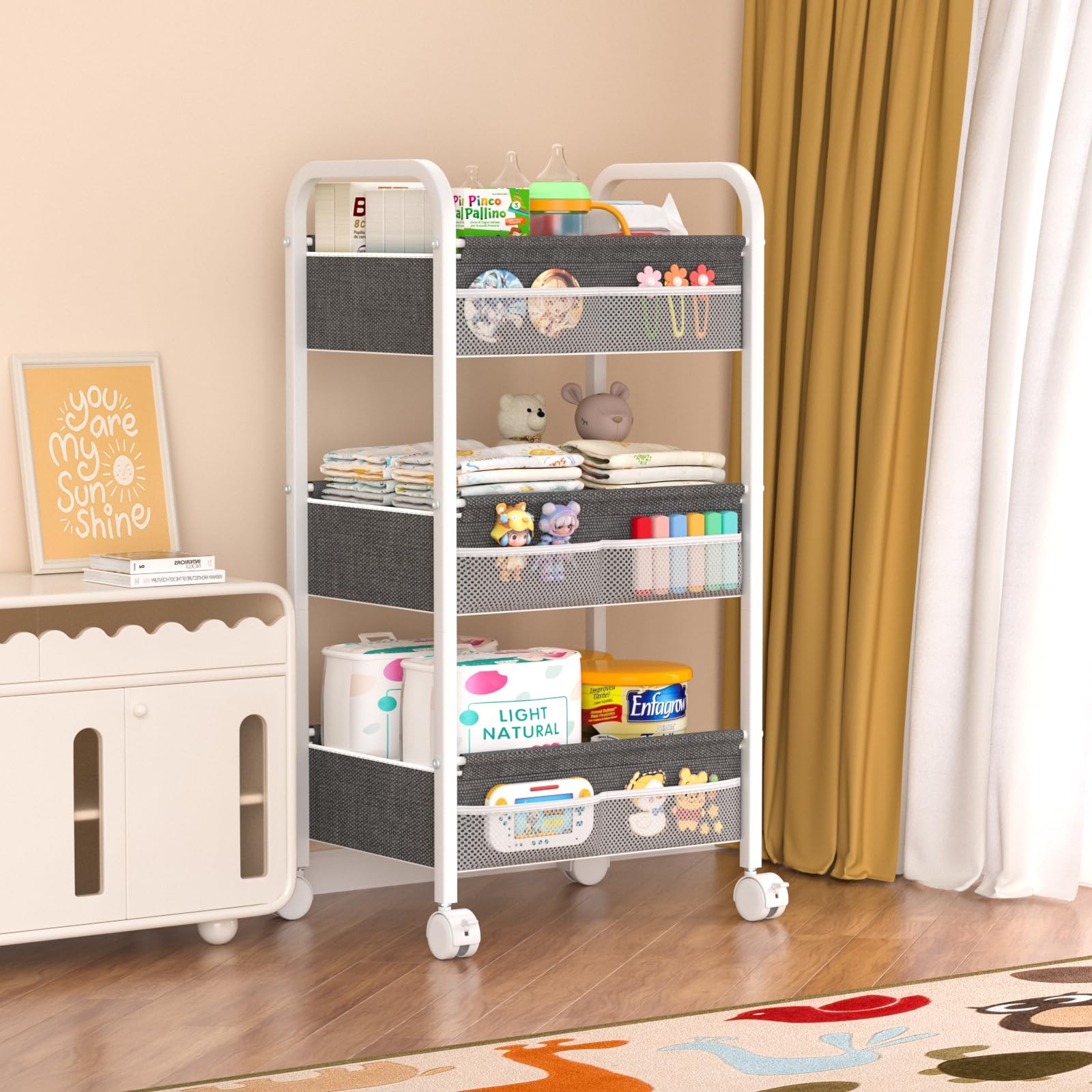 Baby Diaper Caddy Rolling Utility Cart, 3 Tier Baby Essentials Nursery Organi...