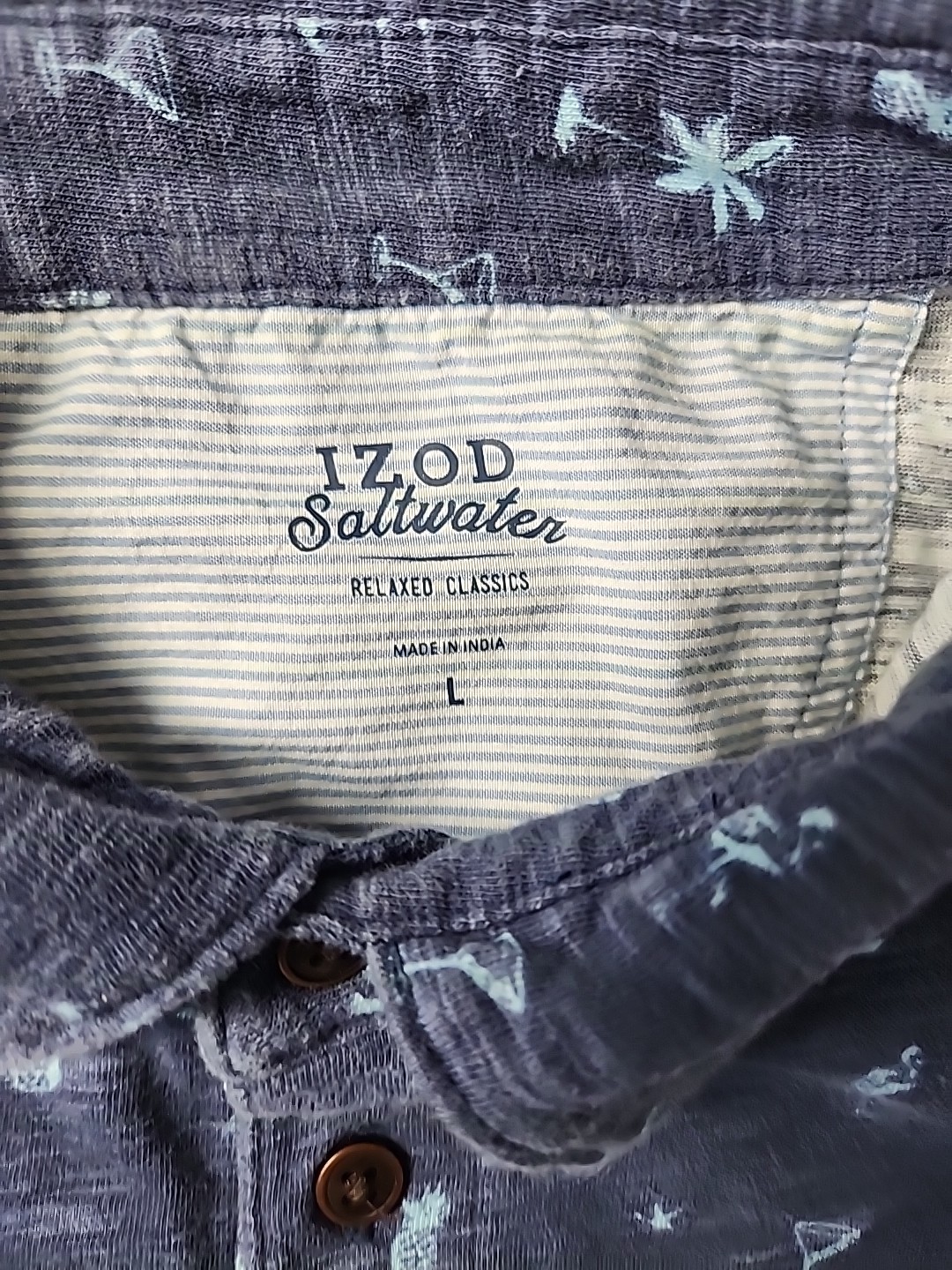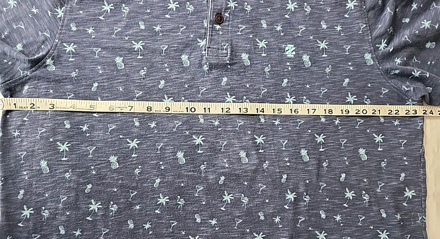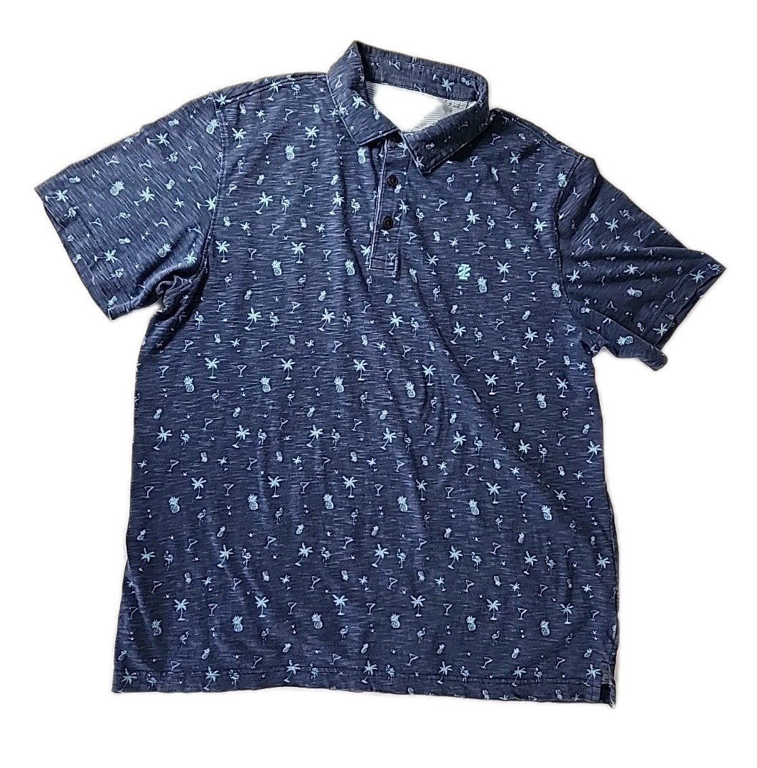 Izod Saltwater Polo Men's Large Blue AOP Pineapple Palms Short Sleeve Cotton EUC