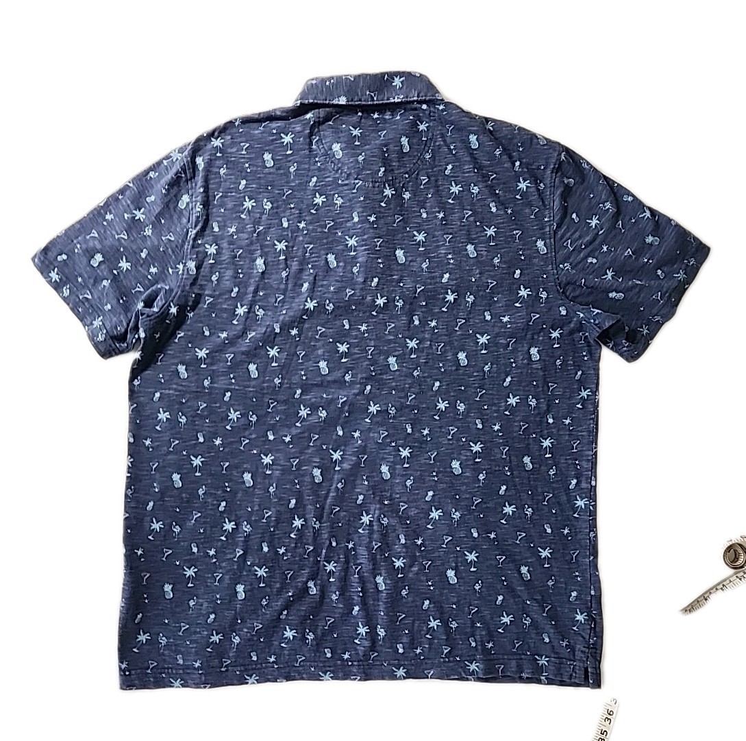 как выглядит Izod Saltwater Polo Mens Large Blue AOP Pineapple Palms Short Sleeve Cotton EUC фото
