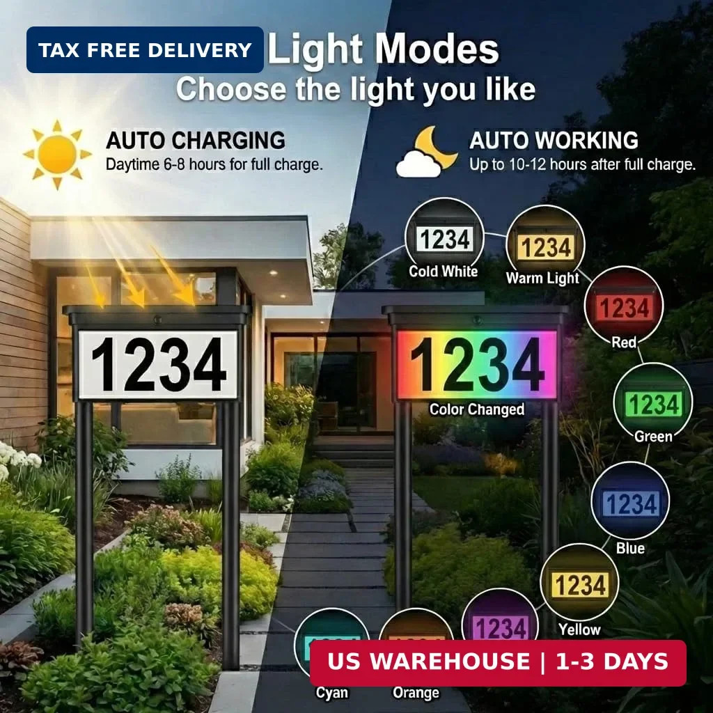 Solar Address Sign for Yard: 29 Double-Sided Lighted House Numbers with 12 Colo