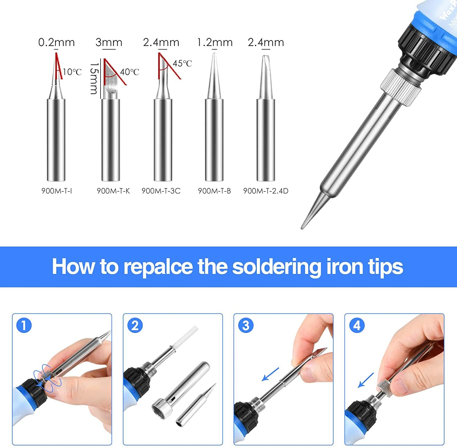 Items in package: Soldering Iron, 5 Soldering Iron Tips, Soldering Wire