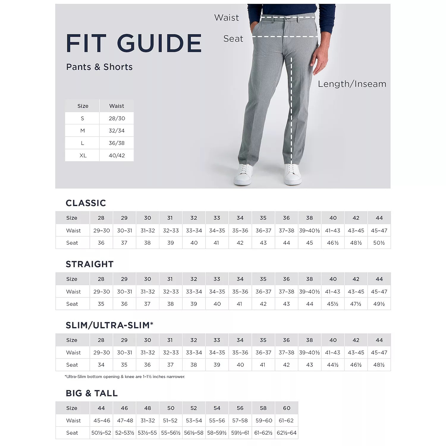 Особенности: Stretch, Premium Stretch, Ultra-Slim, 4-Way Stretch, Flat-Front
