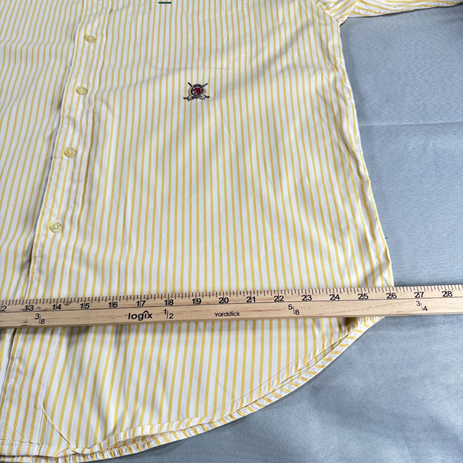 как выглядит Tommy Hilfiger Golf Shirt XL Yellow White Stripe Button Down Cotton Mens фото
