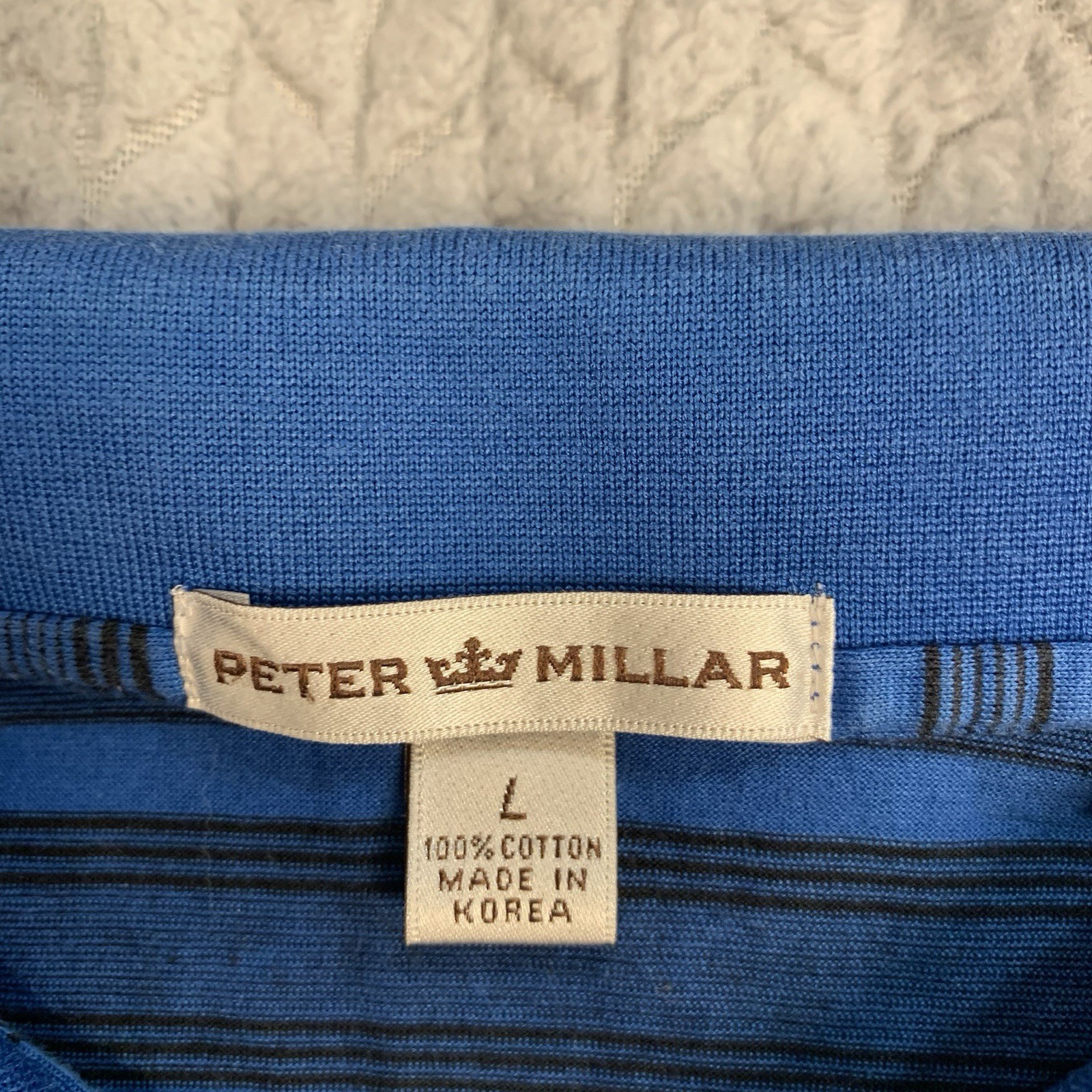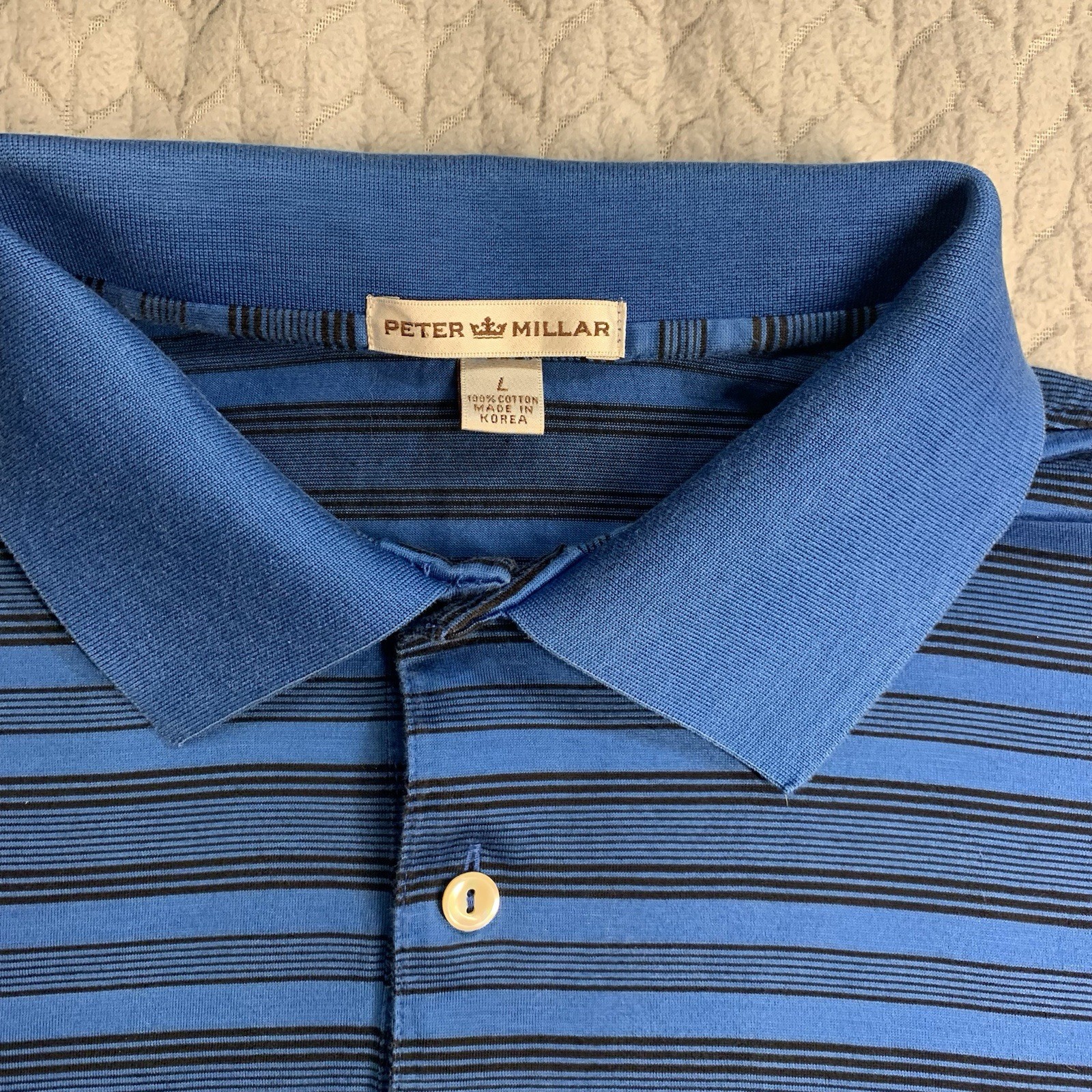 Peter Millar Polo Shirt Mens Large Blue Striped Golf Cotton Short Sleeve
