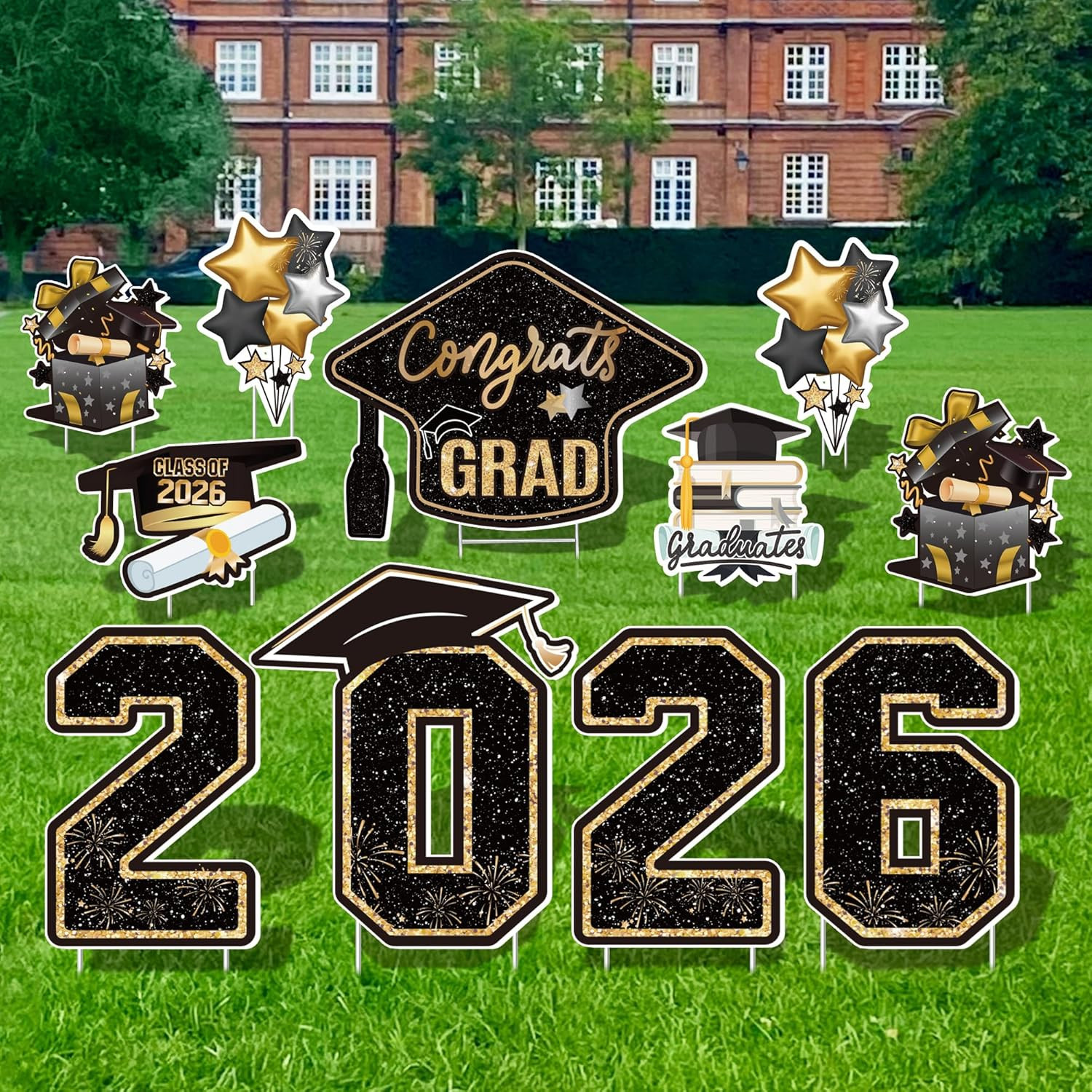 Large 11 PCS Graduation Yard Signs, Class of 2026 Congrats Grad Outdoor Lawn Yar