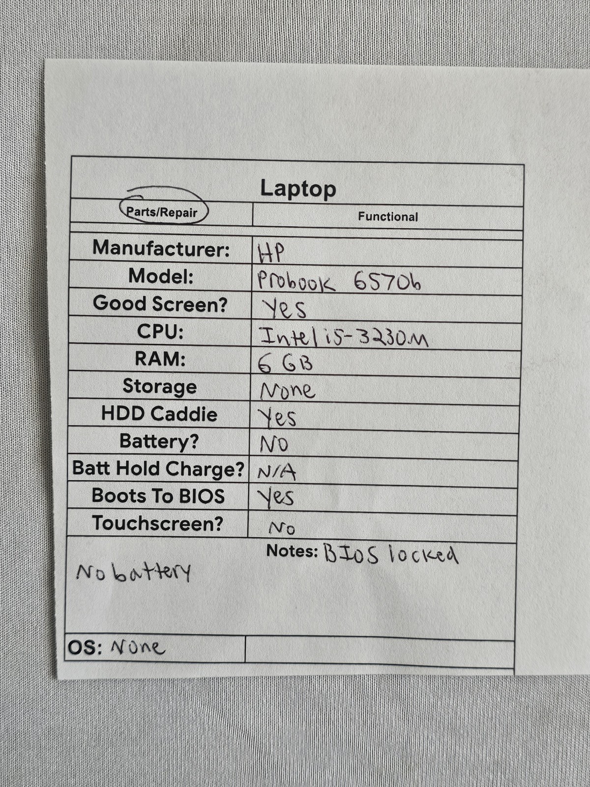 HP ProBook 6570b Laptop - Intel i5-3230M - 6GB RAM - BIOS LOCKED NO BATT - READ