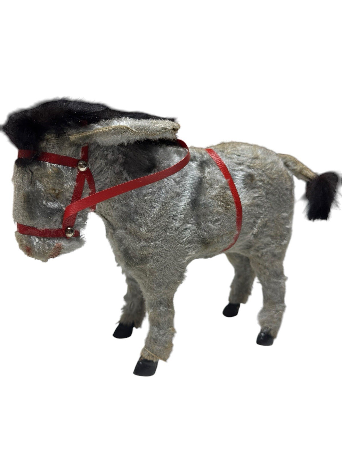 Vintage Wind Up Donkey Toy Plush Fur Mule Works Japan Style Missing Eye
