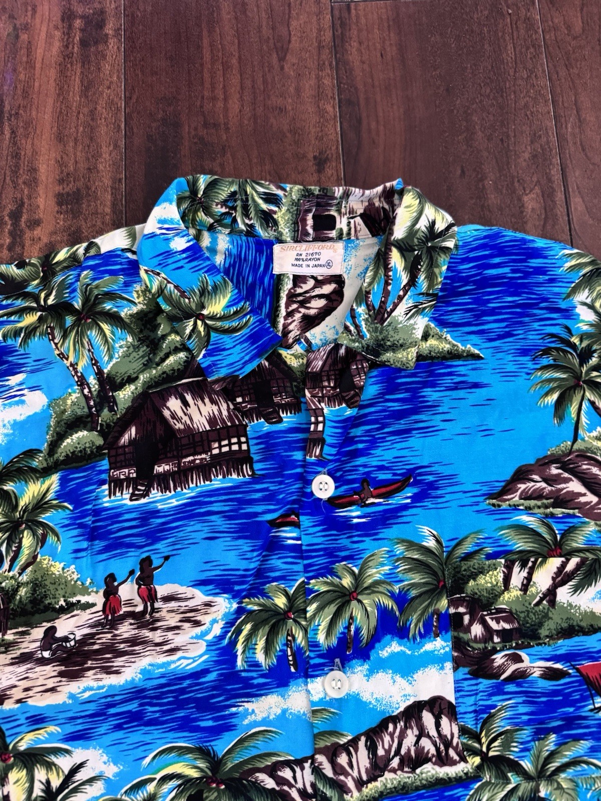 60s Vintage 100 Rayon Hawaiian Loop Collar Shirt Rare Made In Japan Size XL