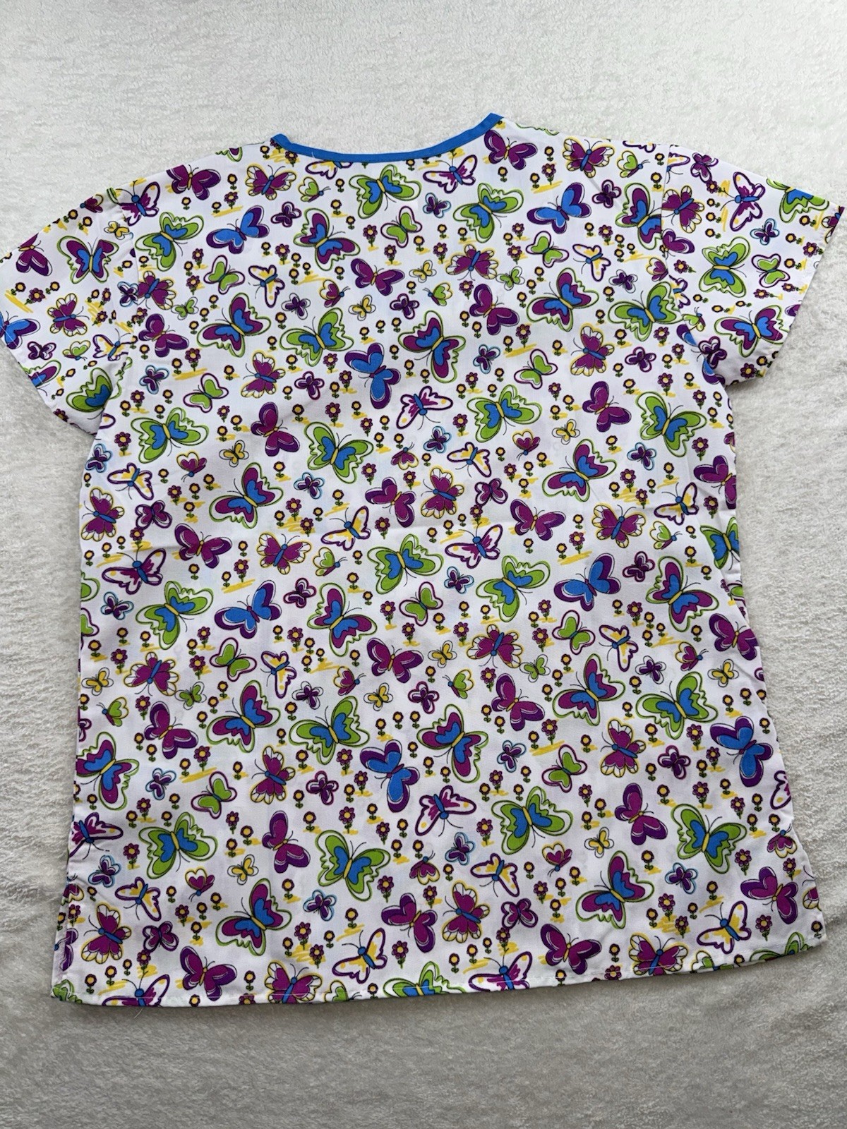 Samantha Mara Women s Mock Wrap V Neck Scrub Top Butterflies Flowers Size Small