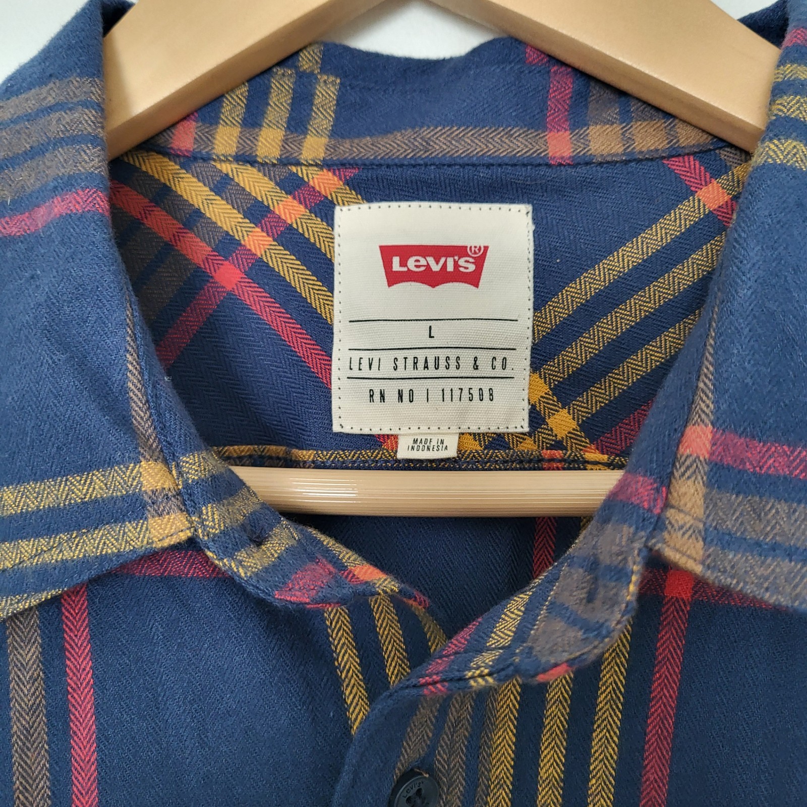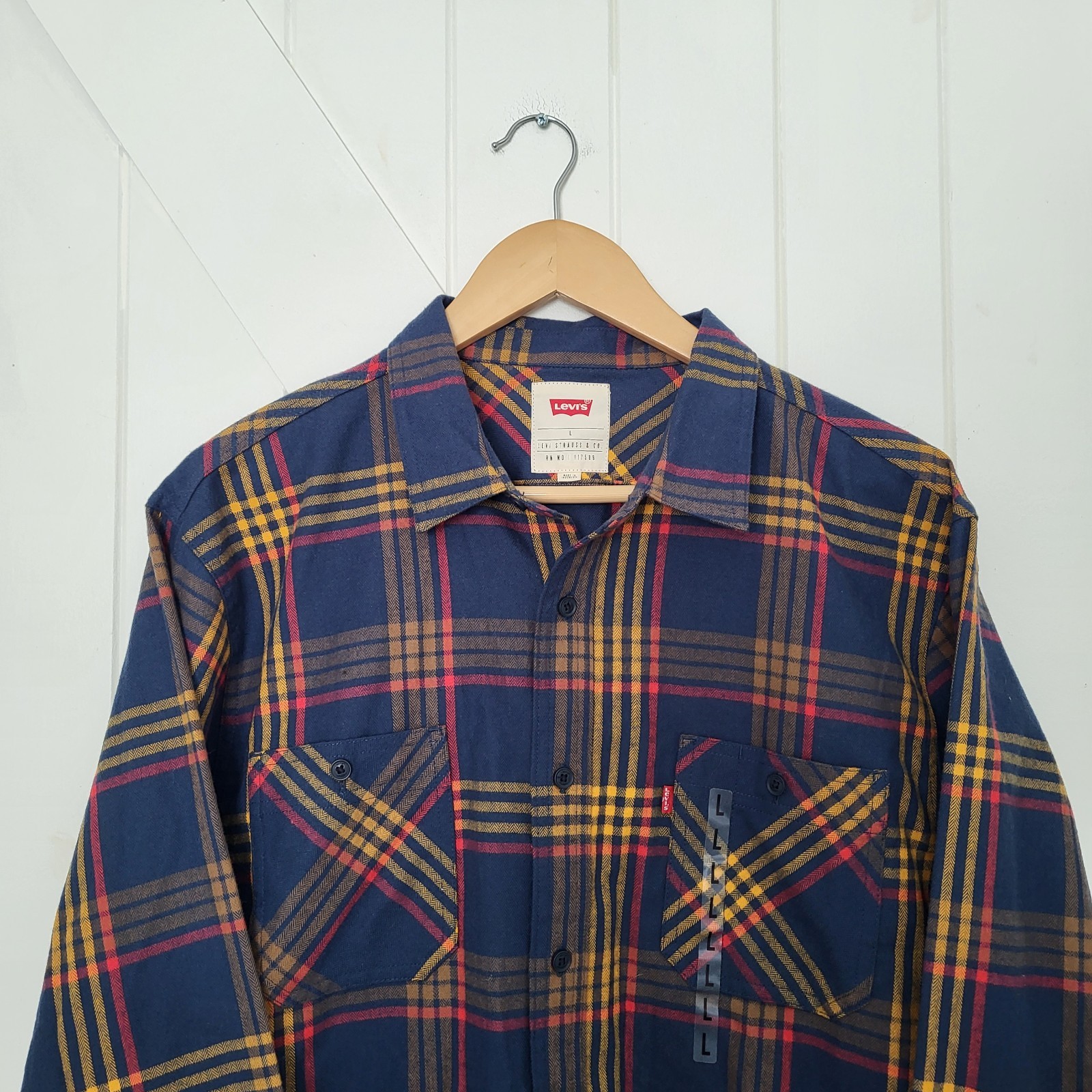 как выглядит New Levis Long Sleeve Button Up Flannel Plaid Shirt Size L фото
