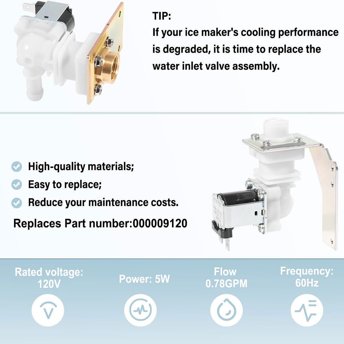 000009123 Water Inlet Valve Assembly 120V 60Hz 5W for Manitowoc Ice Machine