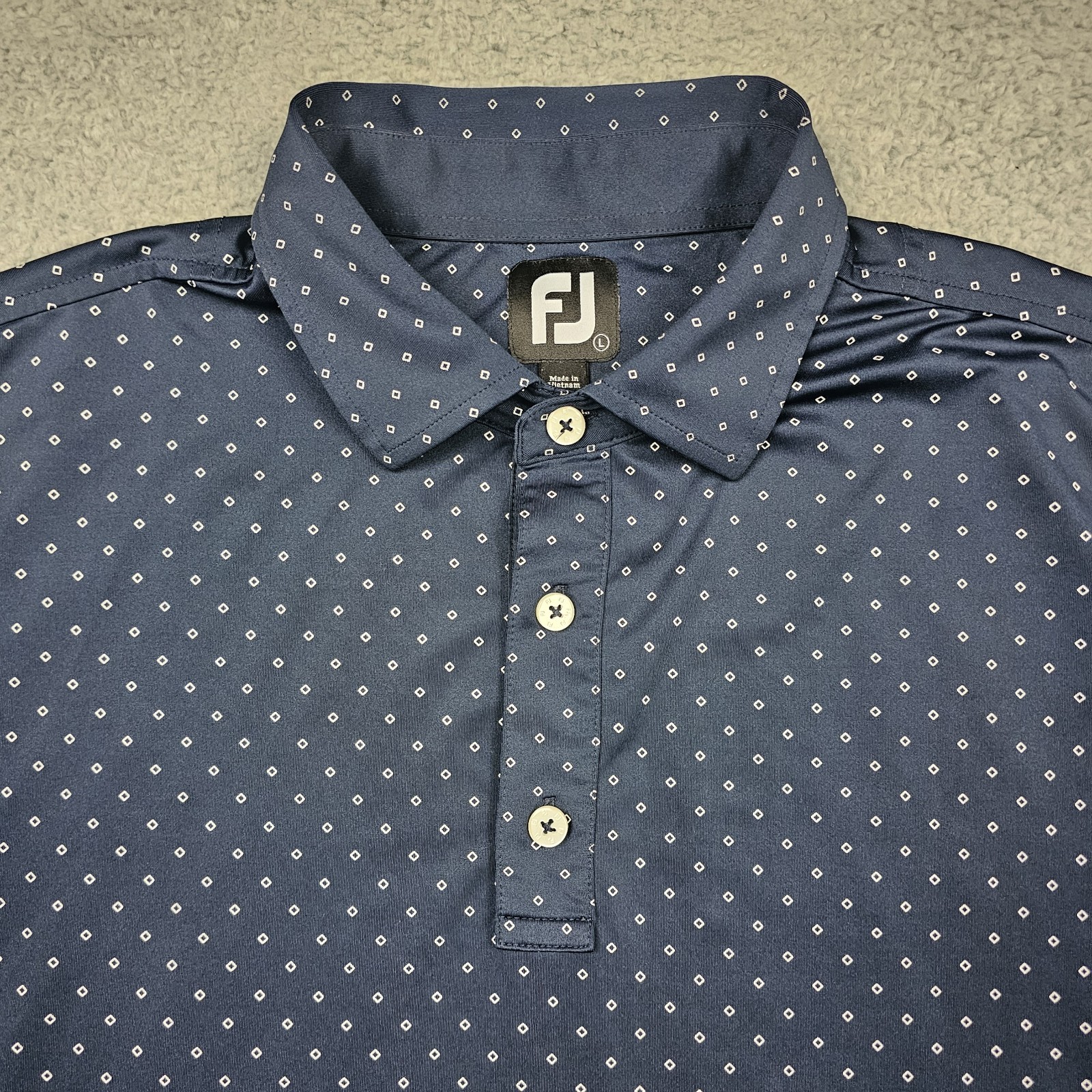 FootJoy Polo Shirt Mens Large Navy Blue Diamond Printed Golf Performance Stretch