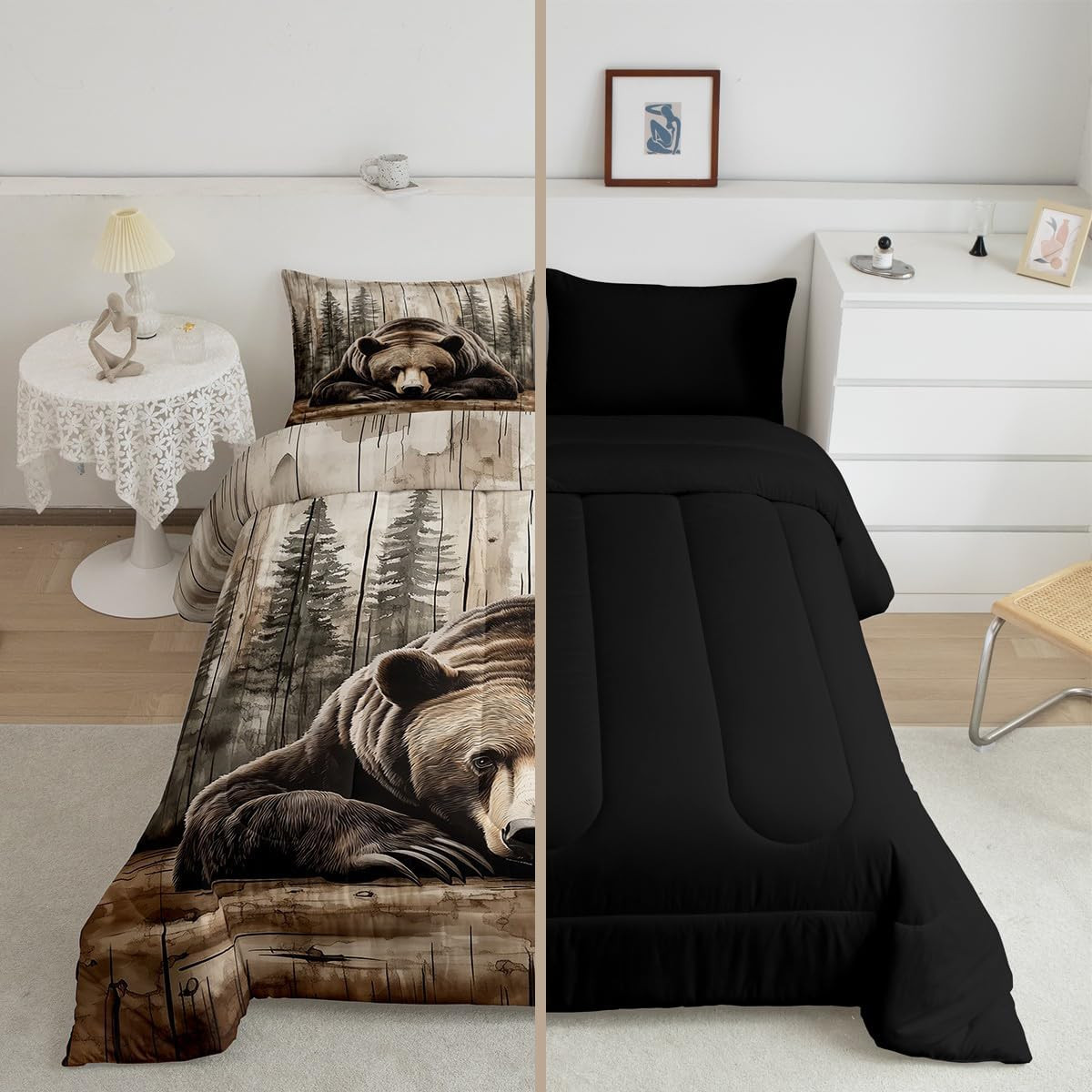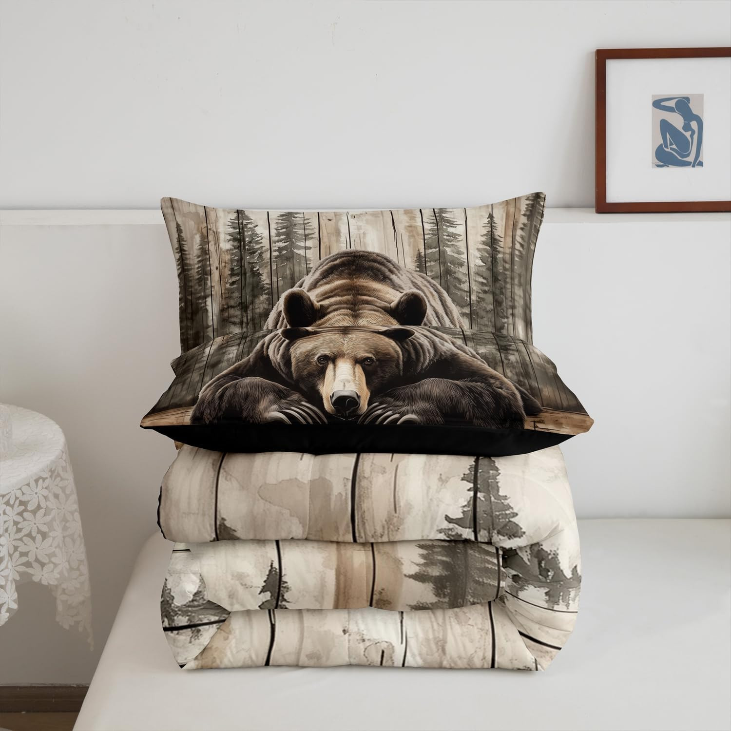 Grizzly Bear Bedding Set Queen Hunting Wild Animal Comforter Set Rustic Farmhous
