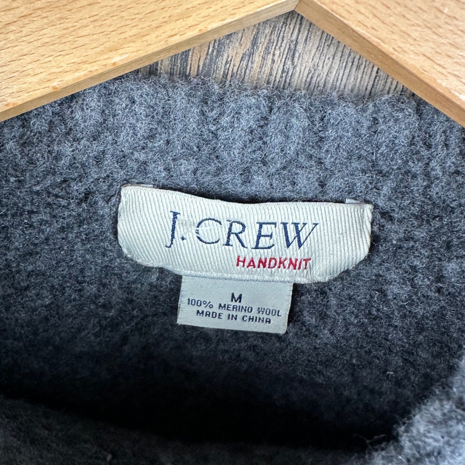 J. Crew Handknit Merino Wool Sweater Mens Medium Gray Heavy Textured Knit