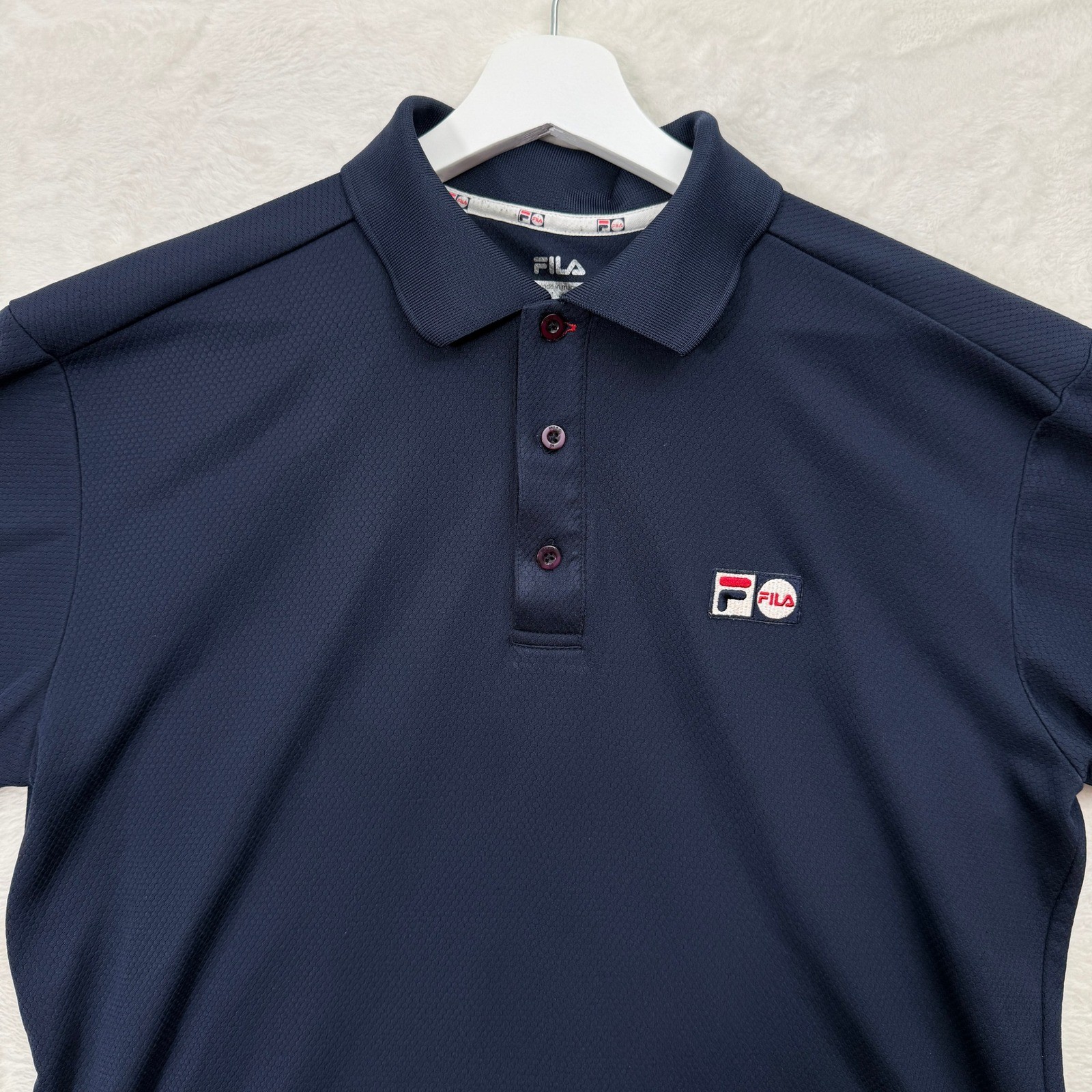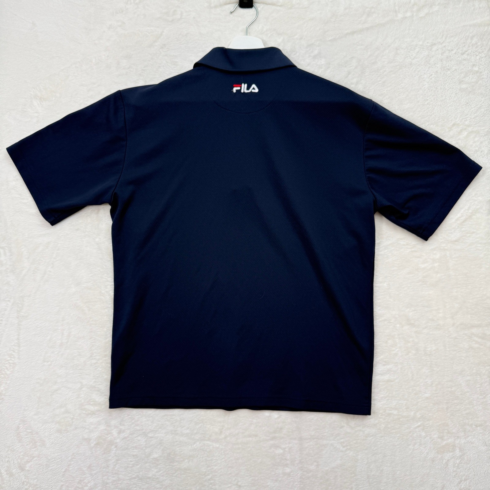 как выглядит Fila Polo Shirt Mens Medium Navy Blue Textured Honeycomb Short Sleeve Athletic фото