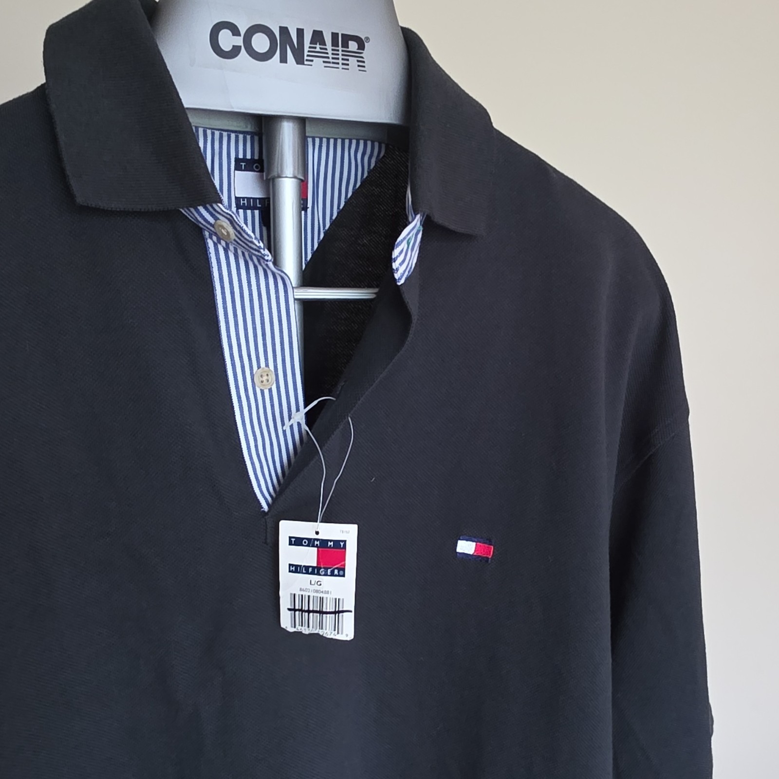как выглядит Tommy Hilfiger Mens Black Polo Shirt Size L 100 Cotton Logo Accent фото