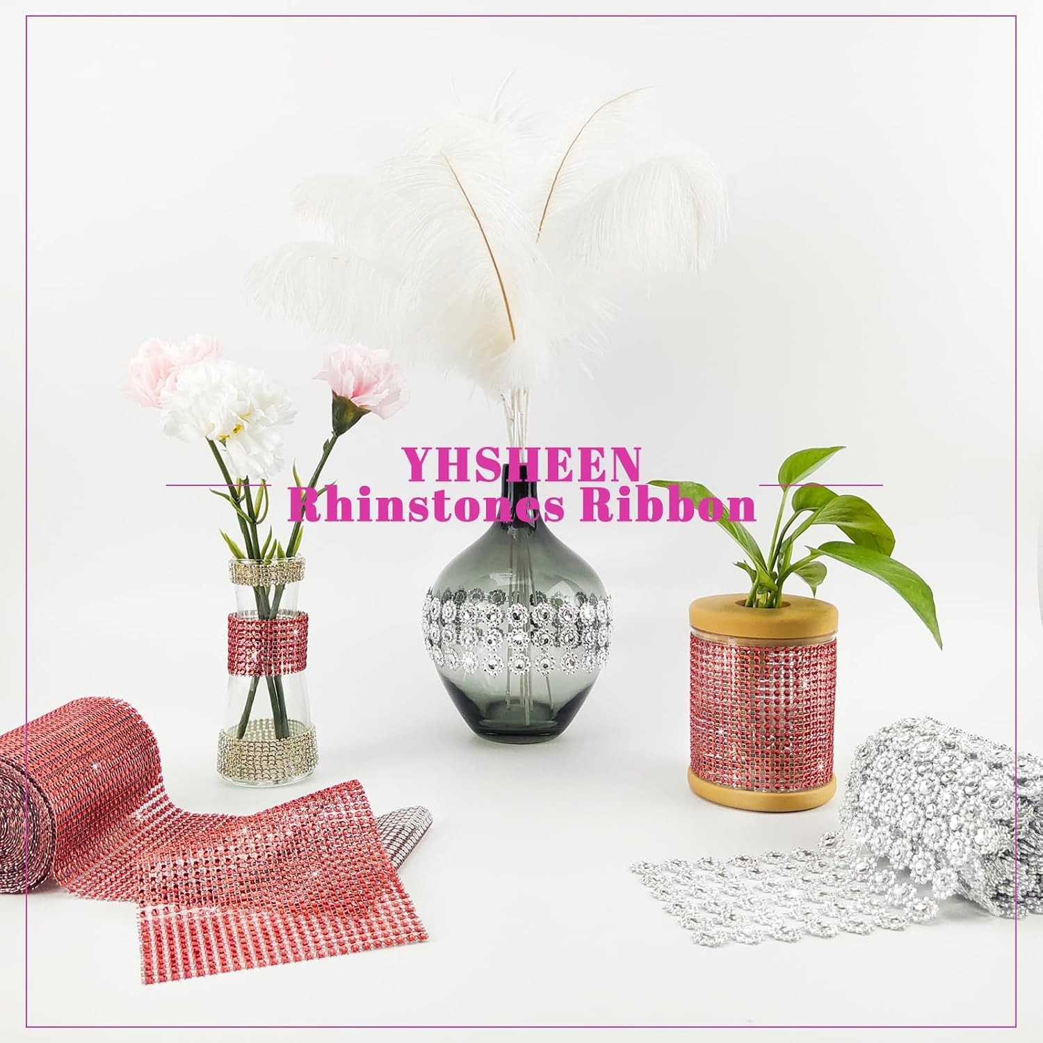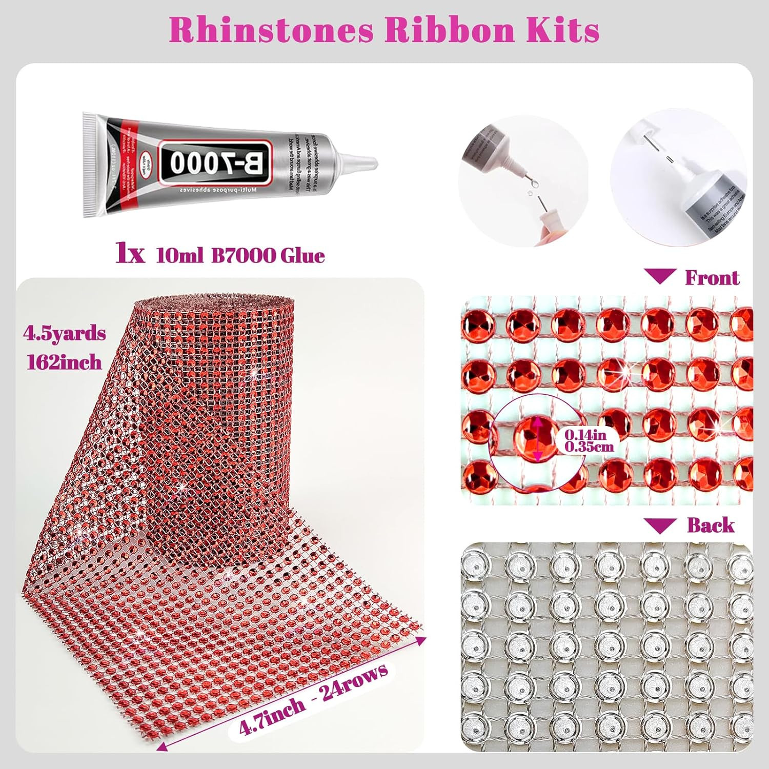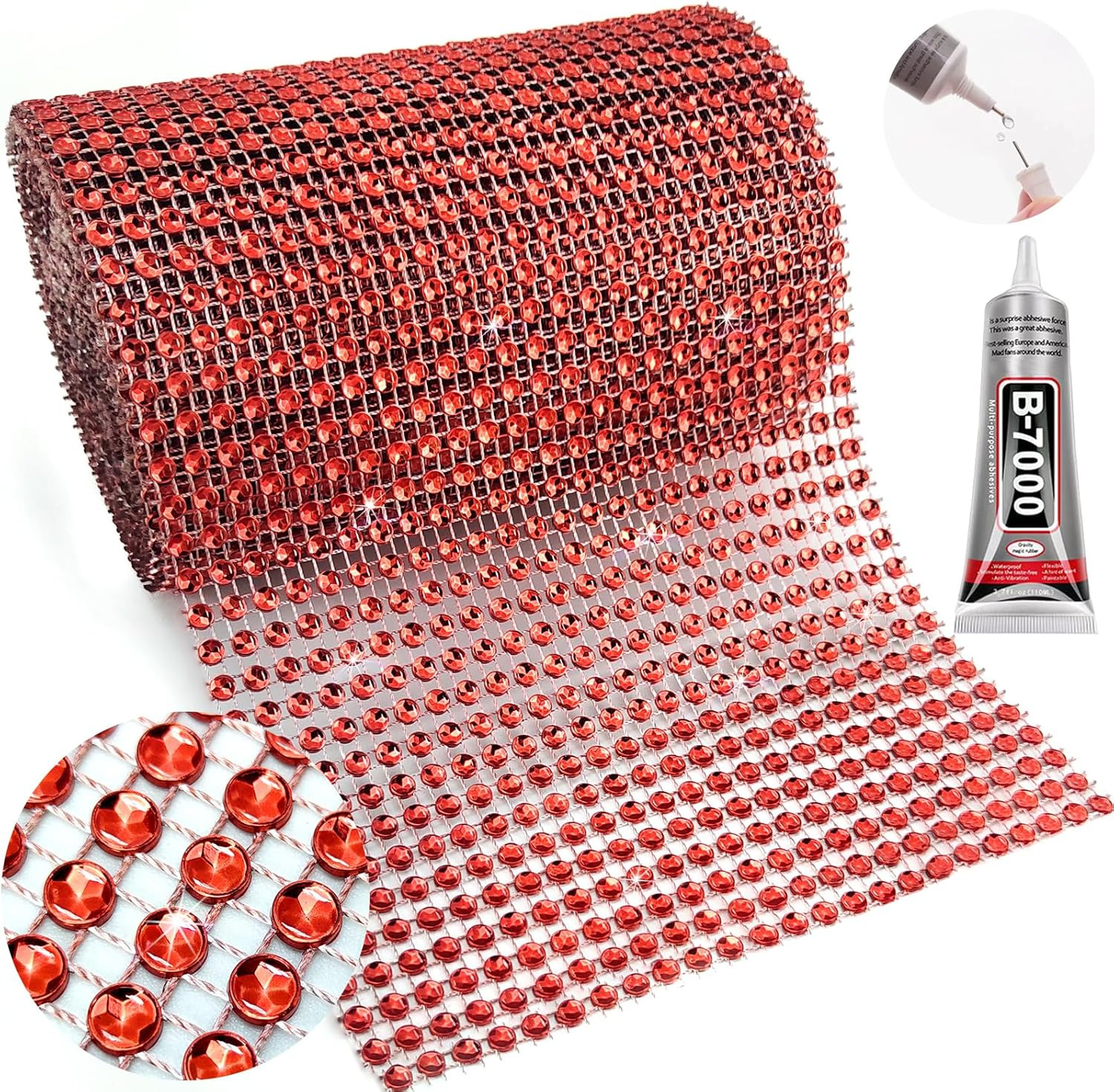 Red Rhinestone Mesh Fabric Ribbon, 4.7In X 4.5Yards 24Rows, Bling Roll for Craft