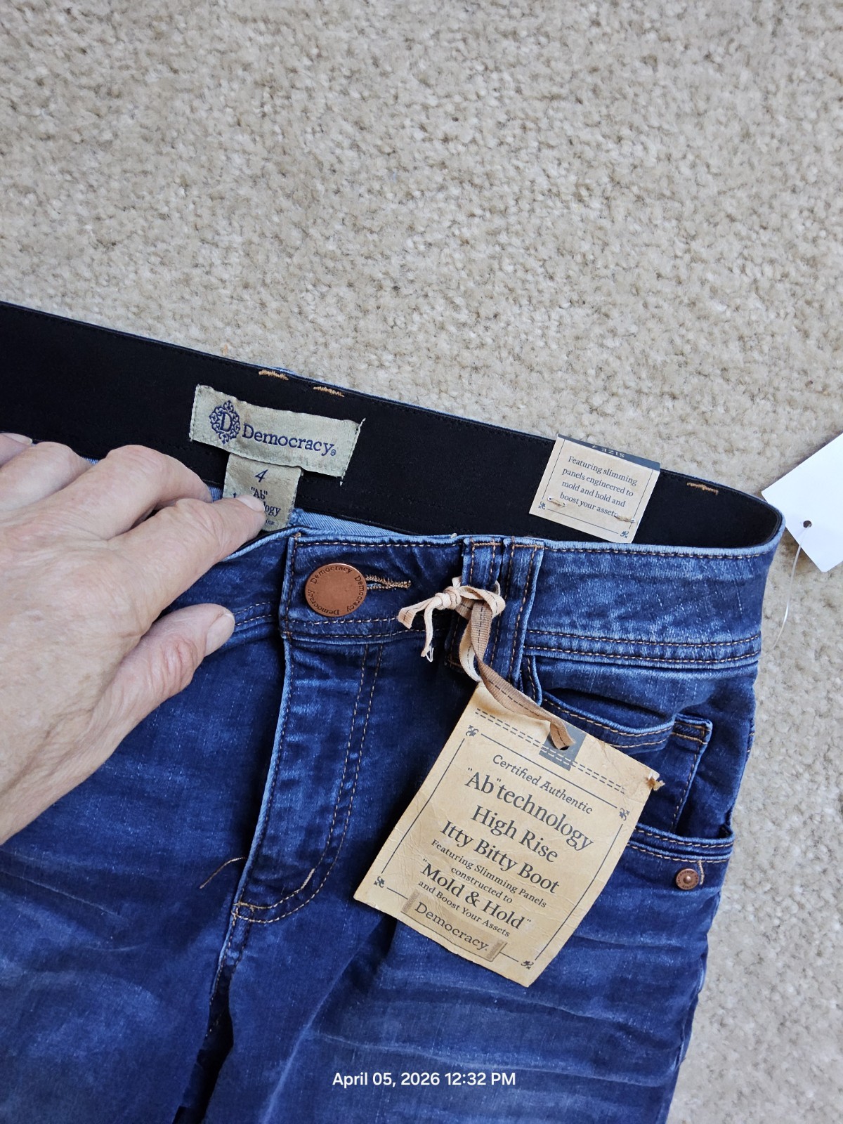 Democracy Ab Technology Dark Wash Itty Bittty Bootcut Destressed Hem Jeans Sz 4
