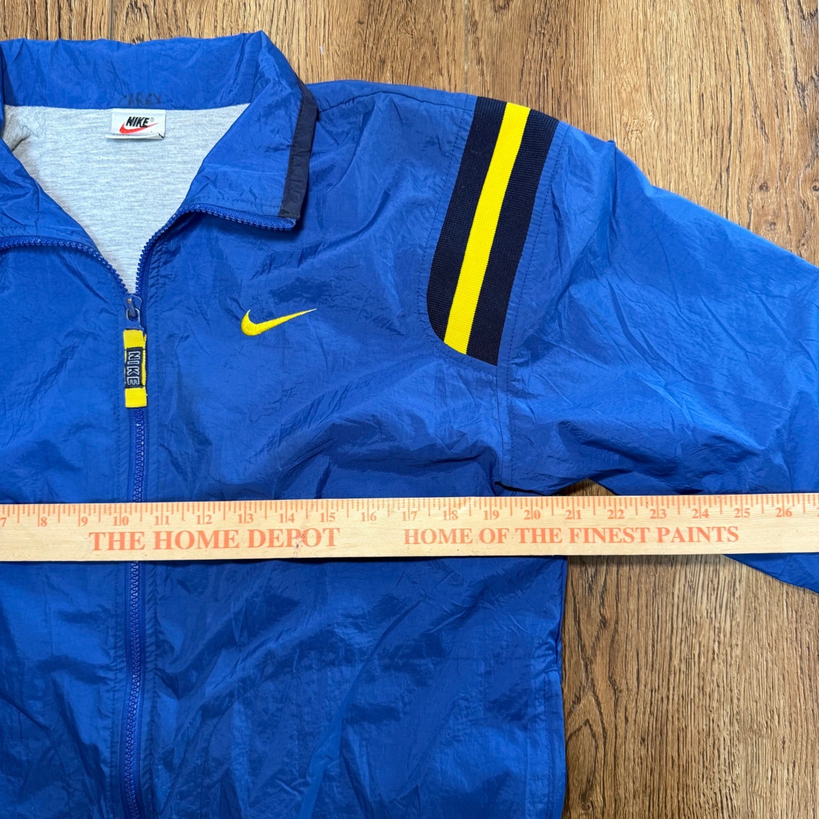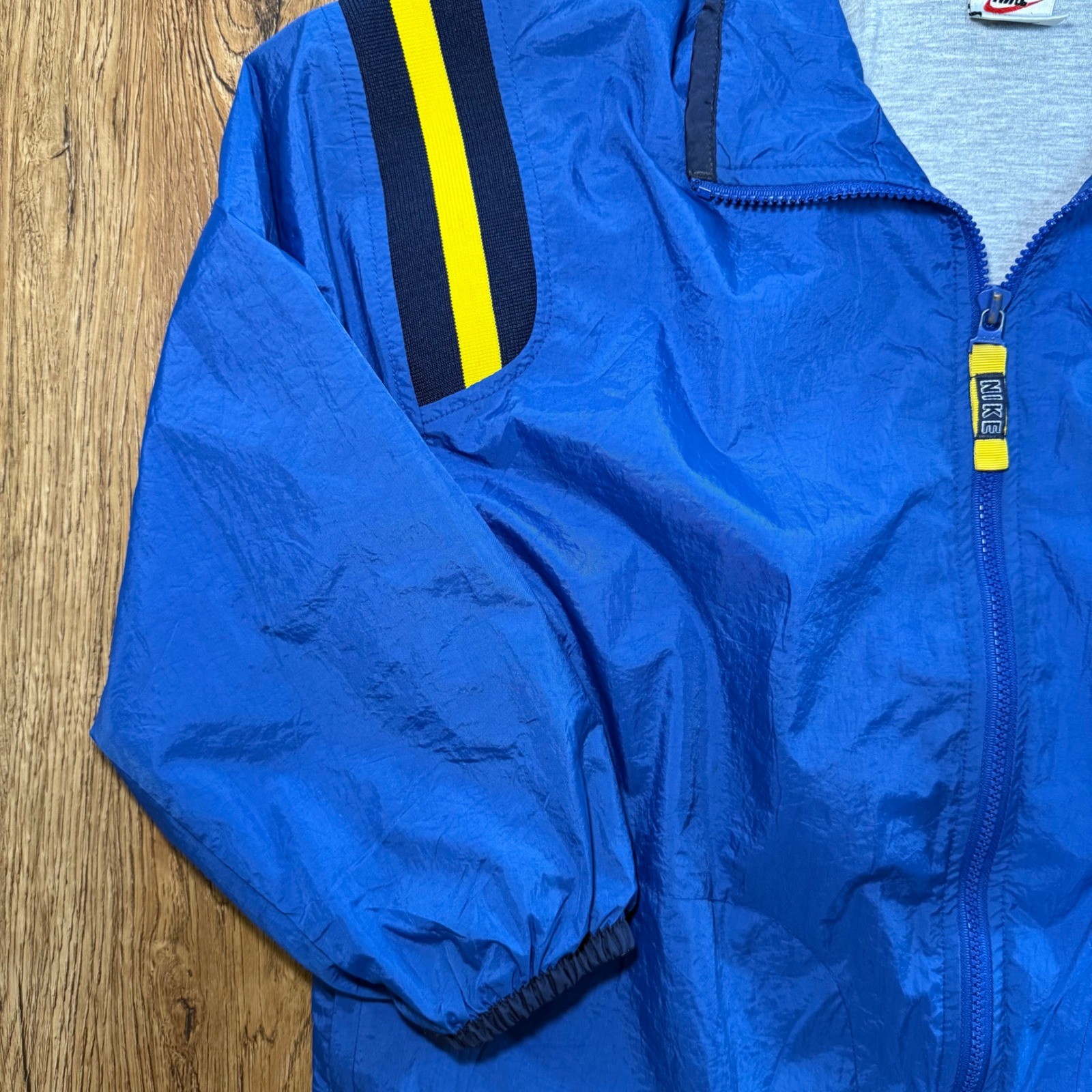 как выглядит VTG 90s Nike Windbreaker Jacket Blue Yellow Stripe Full Zip Youth Medium M 10-12 фото