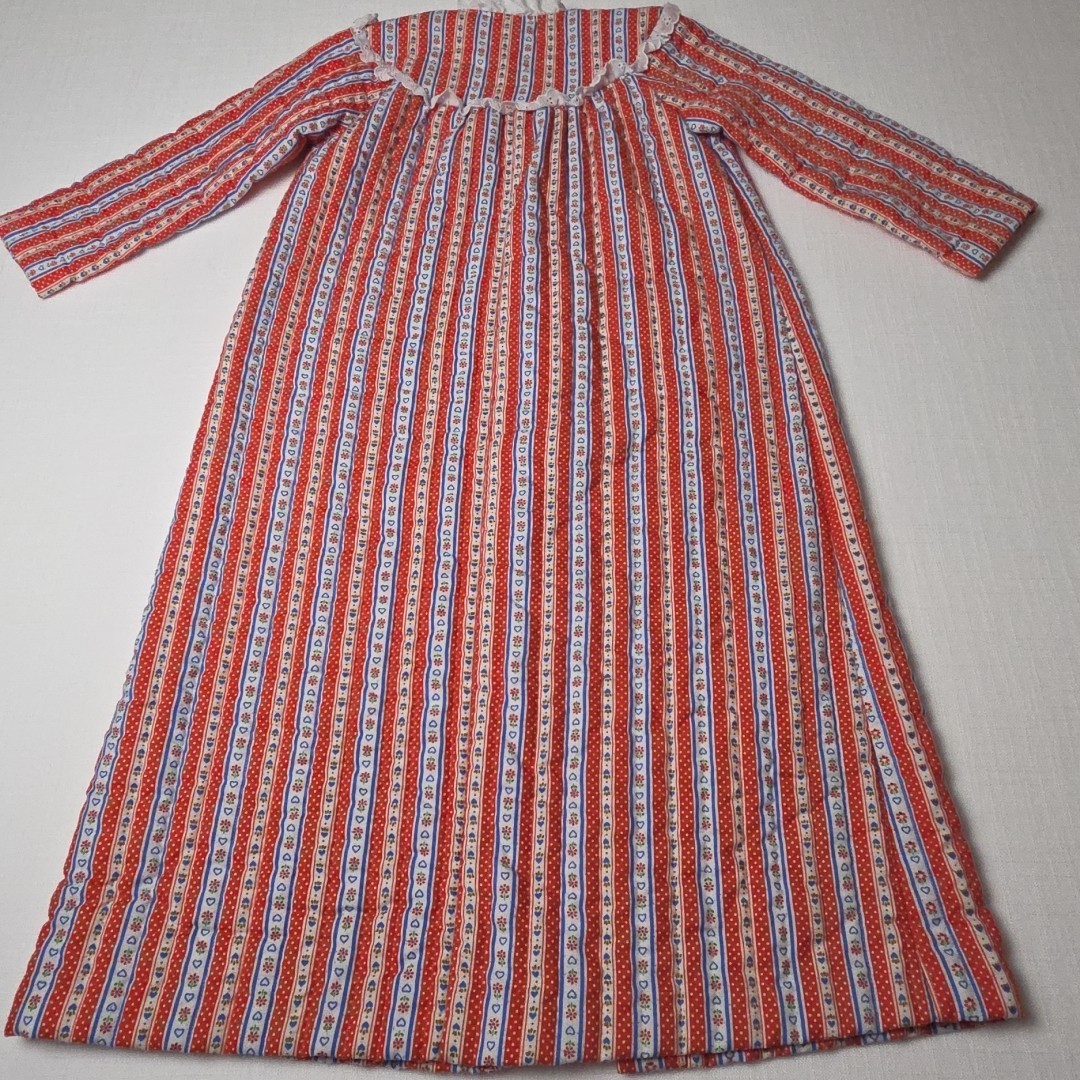 как выглядит Vintage Girls Quilted Nightgown Red Stripe Hearts And Flowers Eyelet Trim 35"x38 фото