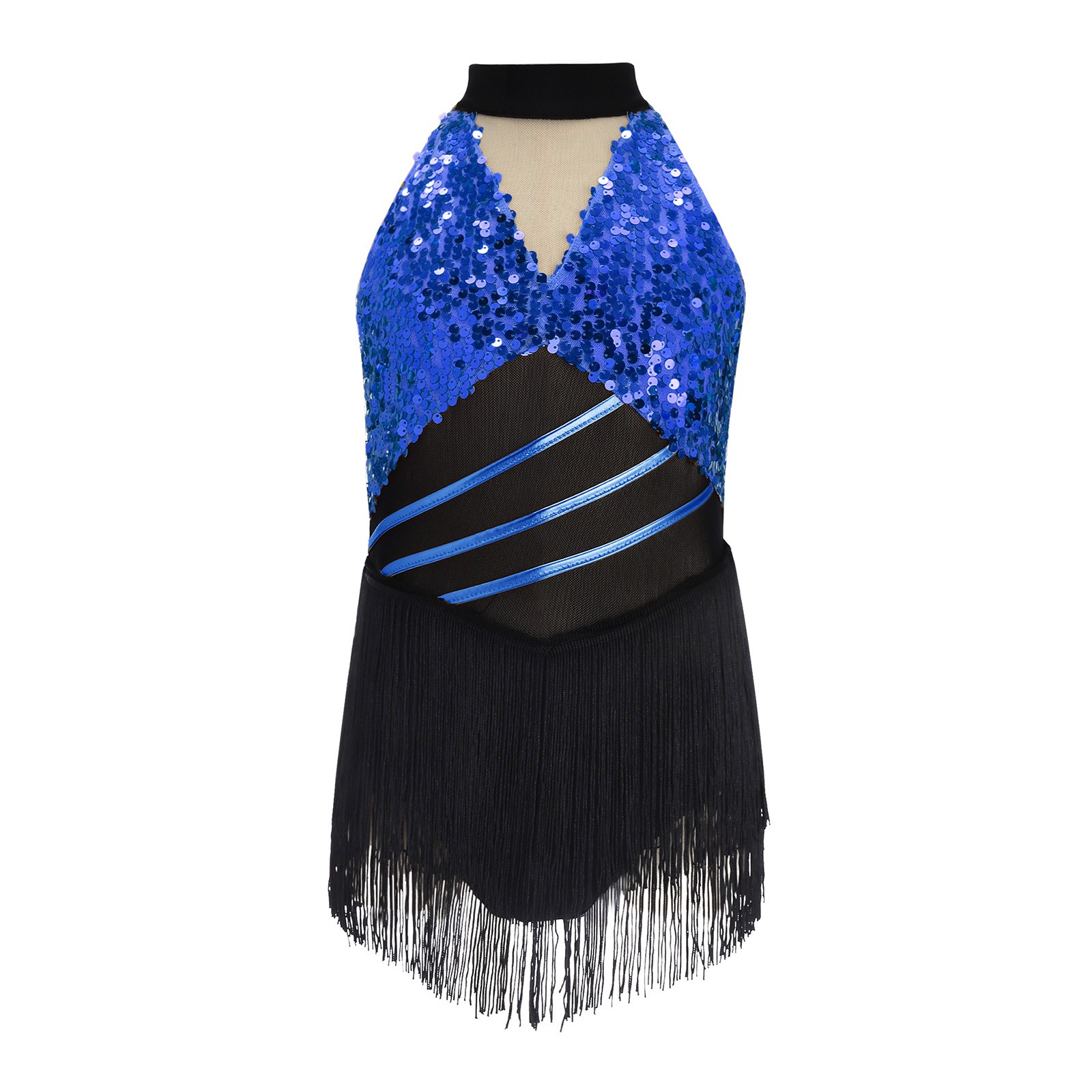 как выглядит US Kids Girl Sequin Tassel Dress Metallic Dance Dress Sleeveless Fringe Bodysuit фото