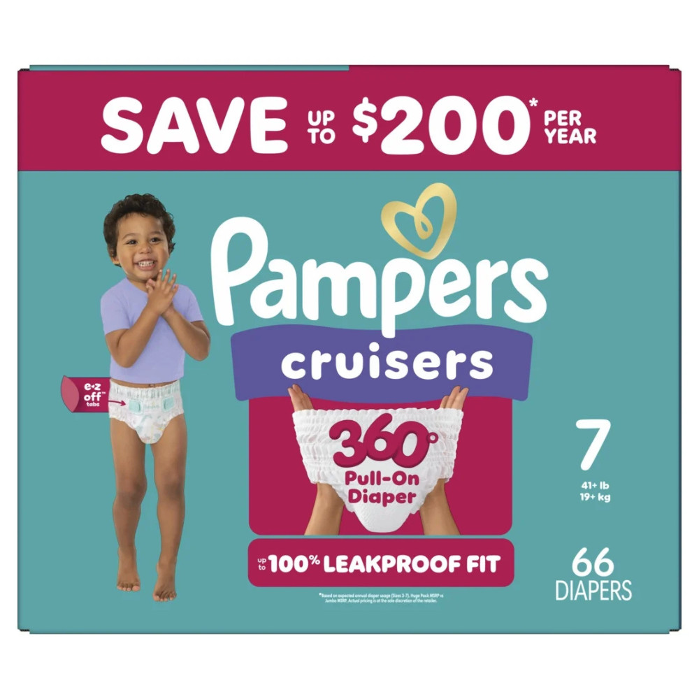 Pampers Cruisers 360, Pull-On Diapers, Size 7, 66 Count, Soft, Elastic Waistband