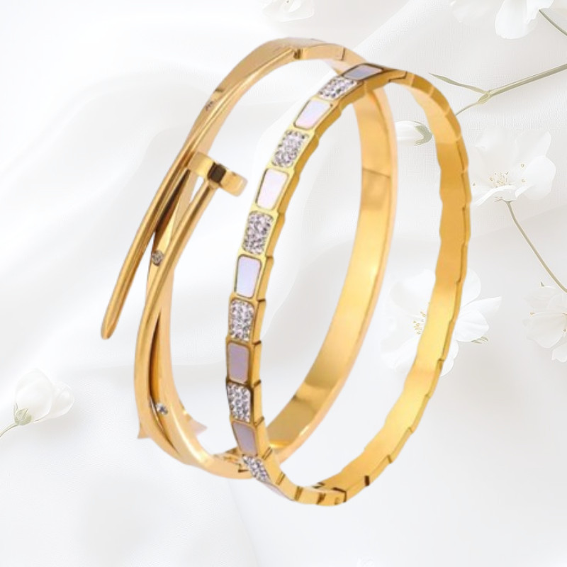 2PCS Stylish Gold plated Women s Minimalist Bangle Bracelets Fashion Jewelry Set