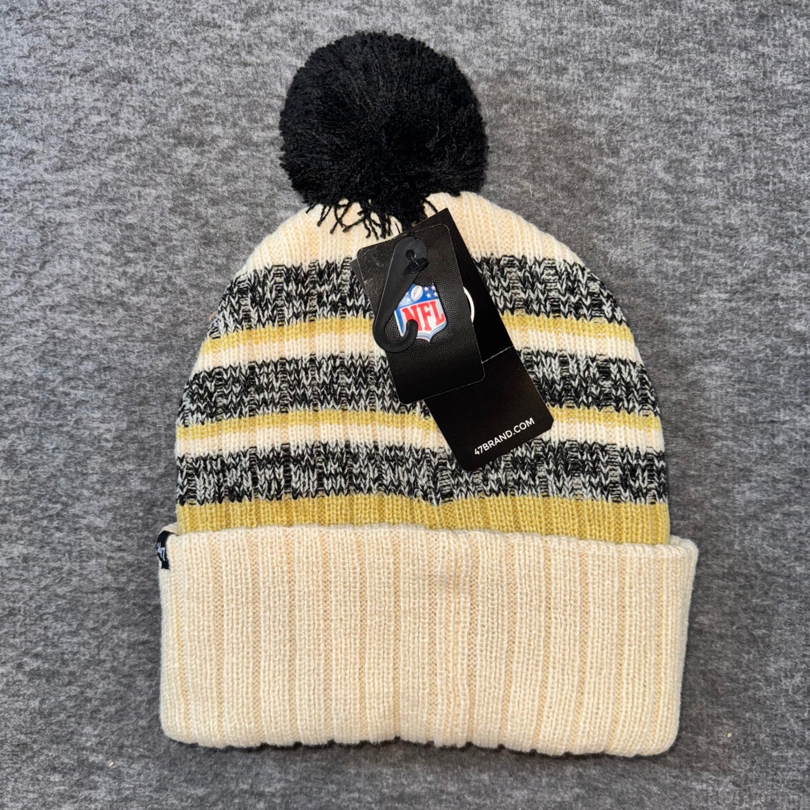 • New Orleans Saints 47 Brand NFL Pom Beanie Knit Hat Winter OSFA Natural NEW